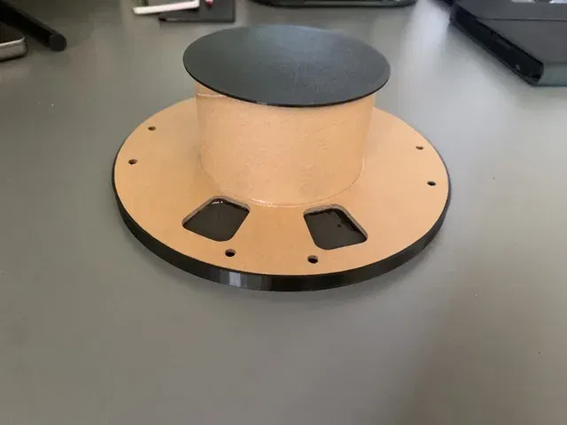 Đây là một bàn xoay mà tôi đã làm bằng cách sử dụng một cuộn bìa Overture cũ, tấm xốp đen từ dollar tree và một vài bản in 3D đơn giản.