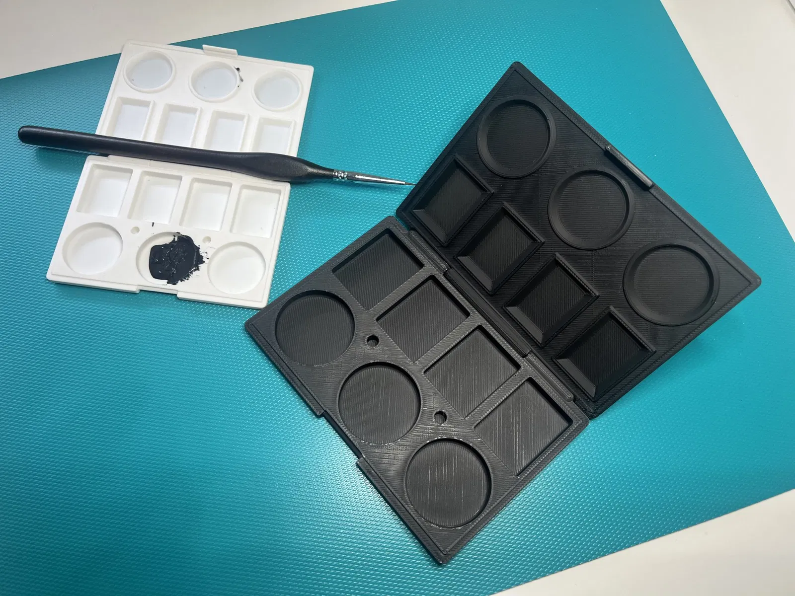Một khay trộn màu nhỏ cho sơn acrylic, có nắp kín và có bản lề tích hợp. Quan trọng là phải đảm bảo rằng bản lề không được kết nối với nửa còn lại khi cắt, trong trường hợp này bạn phải điều chỉnh các đường viền và chiều cao của các lớp. Đối với tôi, 0.2mm là kích thước hoạt động tốt. Nếu bạn thay đổi tỷ lệ nhỏ hơn hoặc lớn hơn, bạn cũng có thể phải điều chỉnh chiều cao của lớp.