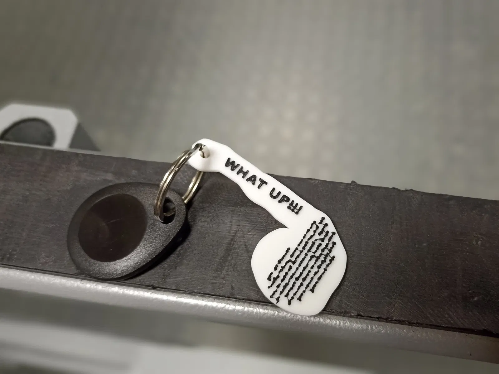 Tôi cần một móc khóa cho phòng gym và đã mô phỏng cái này từ tờ rơi bắp tay của băng nhóm trong It's Always Sunny in Philadelphia S3E3 Mẹ của Dennis và Dee đã chết.
