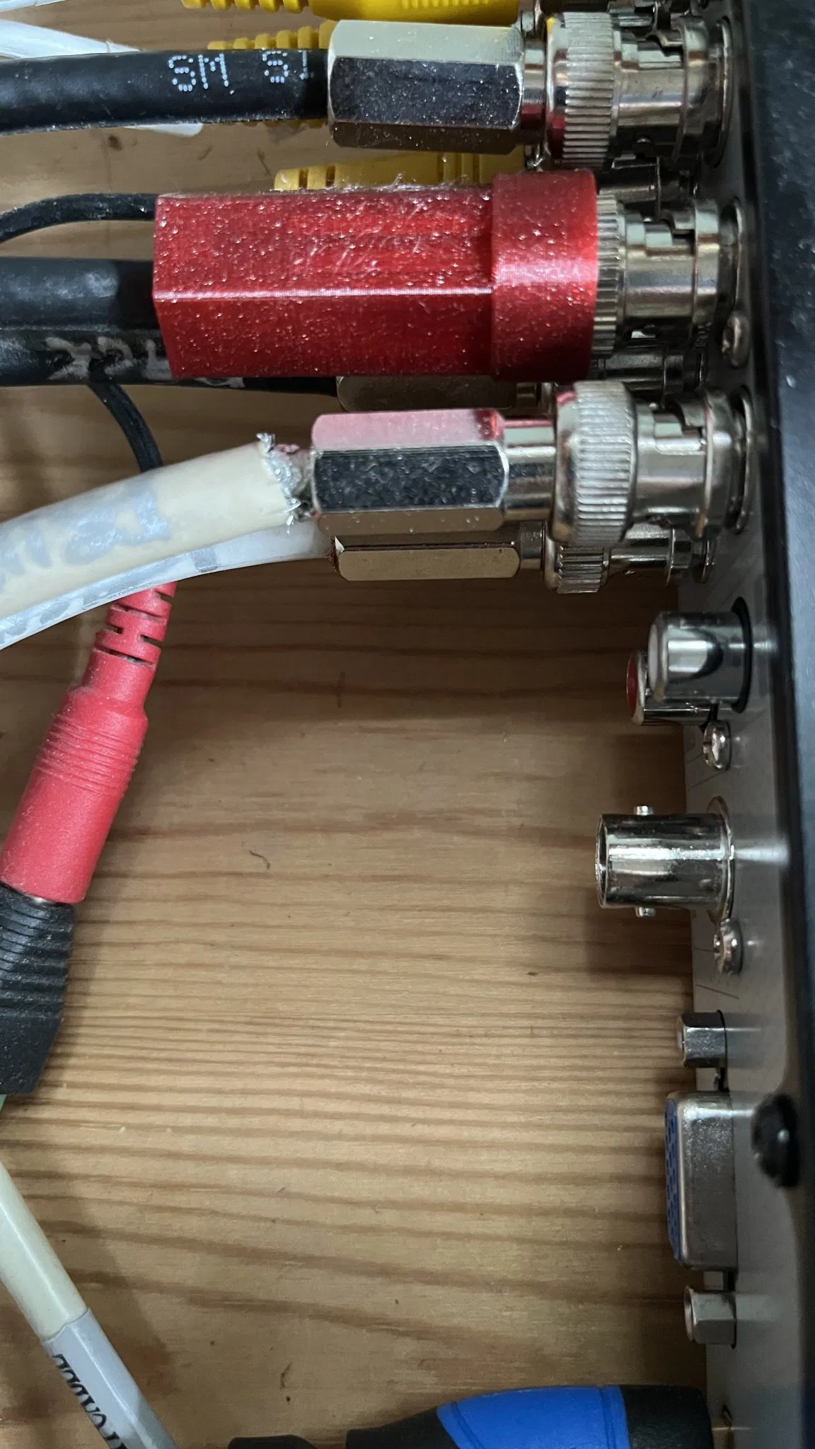 Trừ khi bạn có những ngón tay nhỏ, việc kết nối một đầu cắm BNC đực trong một nhóm chật chội các đầu cắm BNC là rất khó. Bạn không thể đưa ngón tay vào đó để nắm và xoay đầu cắm. Và khi cố gắng tháo một cái, bạn không thể ấn và xoay khi tất cả các cáp đều chật chội. Công cụ này trượt qua cáp và nắm chặt đầu cắm đực để bạn có thể lắp đặt hoặc tháo gỡ nó.