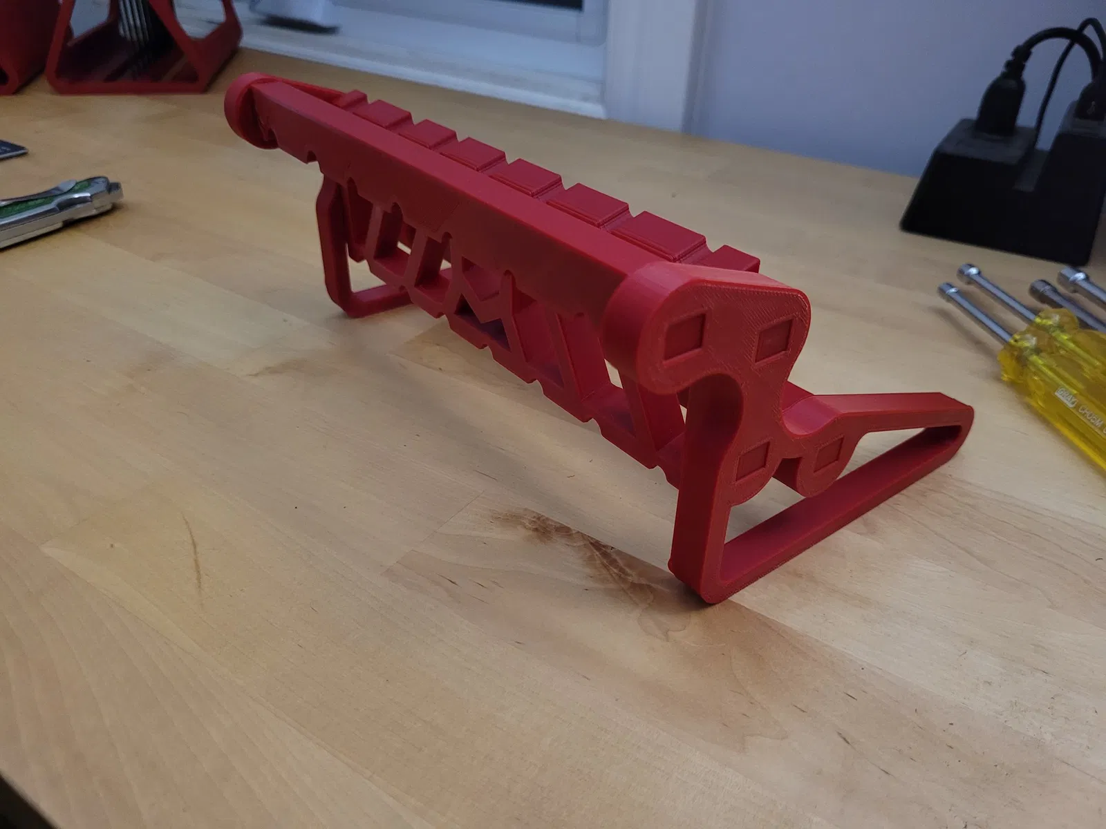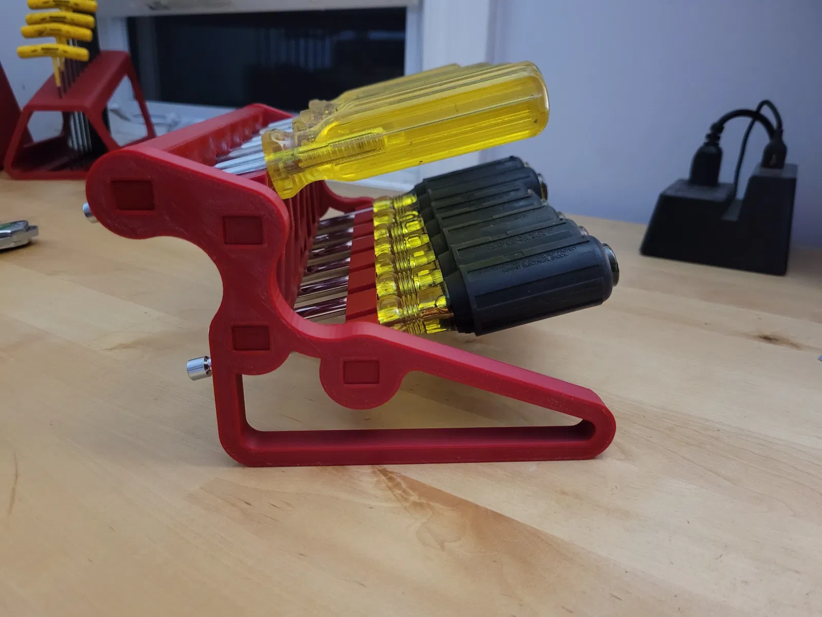 Đây là một giá đỡ dụng cụ vặn đai cho cả bộ mét và bộ inch. Các bộ phận được thiết kế với kích thước vừa vặn chắc chắn khi lắp ráp nên không cần keo. In một cái cho mỗi tệp ngoại trừ tấm bên sẽ cần 2 cái.
