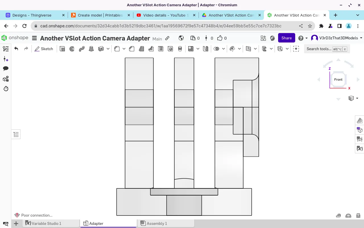 Bạn có thể tìm thấy hàng trăm thiết kế từ Thingiverse và F3D để in làm giá đỡ cho GoPro của bạn, nhưng tôi cần một giá đỡ đơn giản không di chuyển, để không ảnh hưởng đến hiệu suất của máy in 3D. Thêm trọng lượng vào bất kỳ động cơ bước nào có thể ảnh hưởng tiêu cực đến hiệu suất và chất lượng của bản in. Hầu hết các bộ chuyển đổi camera chủ yếu được thiết kế cho bên hông hoặc bệ của máy in 3D, điều này không cung cấp góc nhìn trung tâm. Vị trí duy nhất khác để gắn bộ chuyển đổi mà không ảnh hưởng đến chất lượng bản in và sự căn chỉnh trung tâm là phần nhôm v-slot trục Y-Axis. Bạn vẫn sẽ cần các cánh tay mở rộng để tránh va chạm với bệ máy in 3D của bạn. Bạn sẽ cần [2 mảnh] đai ốc T-Slot M4 (hoặc tương tự) và [2 mảnh] vít máy M4 x 8mm để gắn bộ chuyển đổi. Video Youtube: