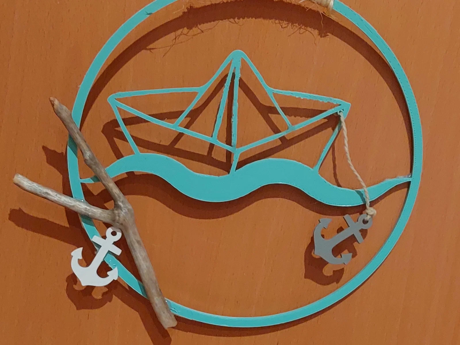 Papierschiffchen als Deko zum Aufhängen. Das kleine Loch am Bug ist dafür gedacht, um ein Band zu befestigen an dem ein Anker hängt.