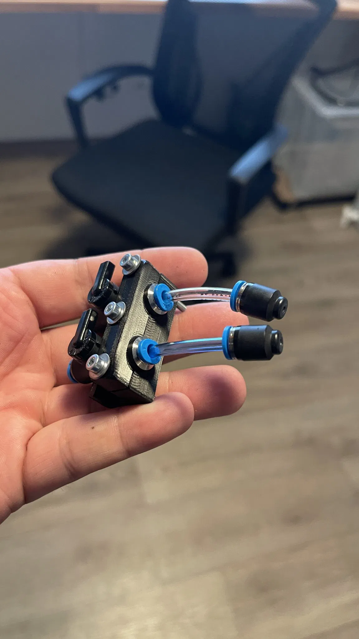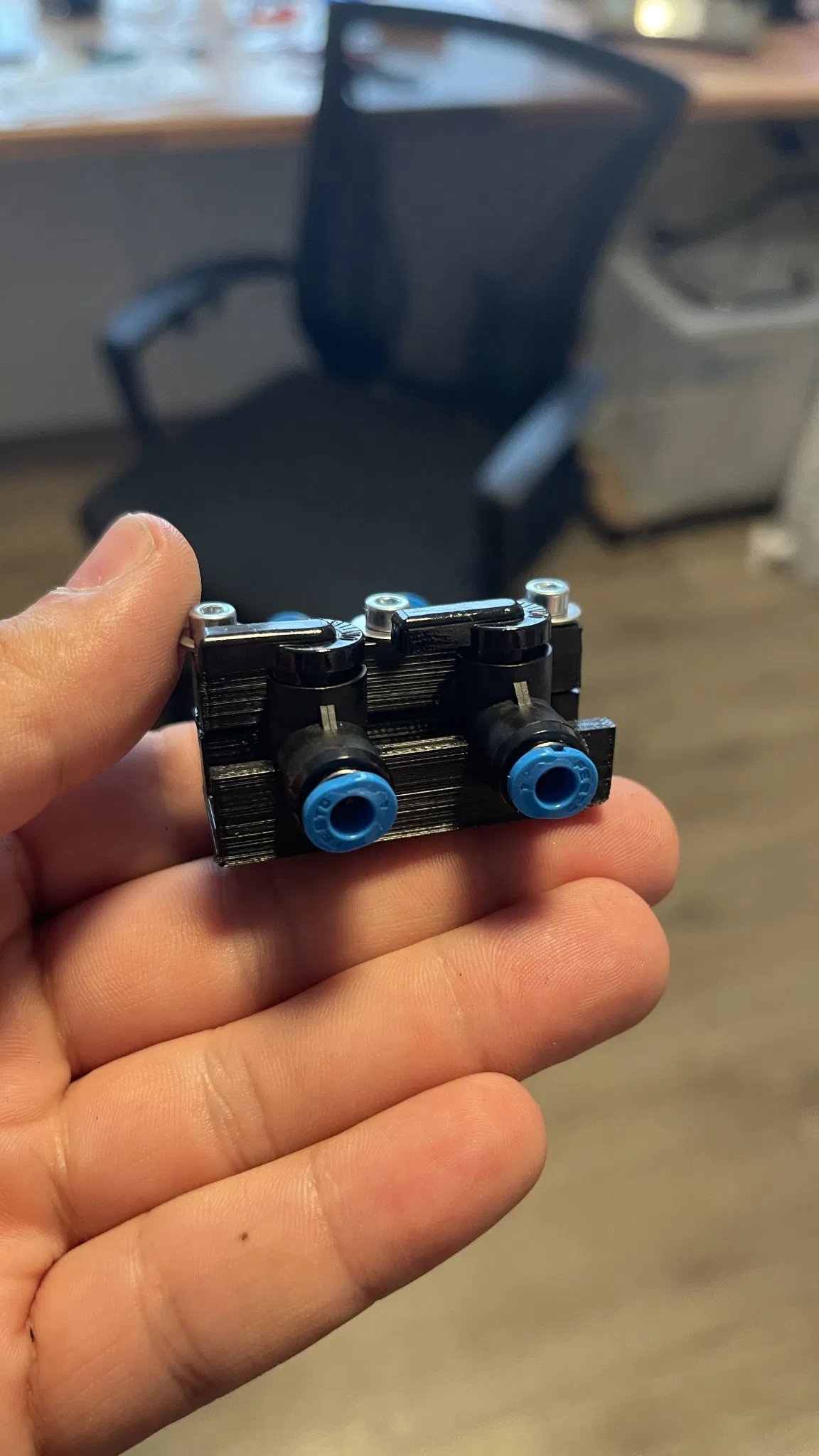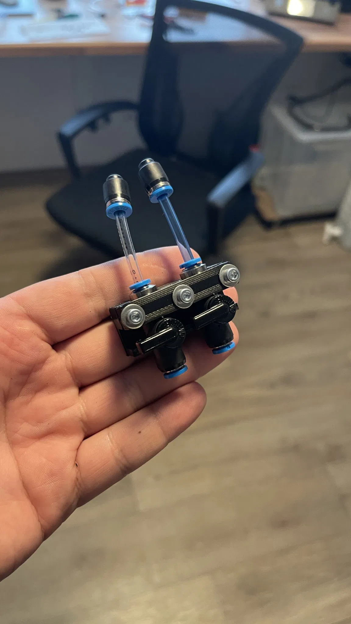 Halterung für 2 Festo 4mm Ventile. Hoàn hảo cho việc tiếp nhiên liệu cho máy bay RC. Trong trường hợp của tôi, tôi tiếp nhiên liệu một lần bằng kerosin và một lần bằng dầu khói.