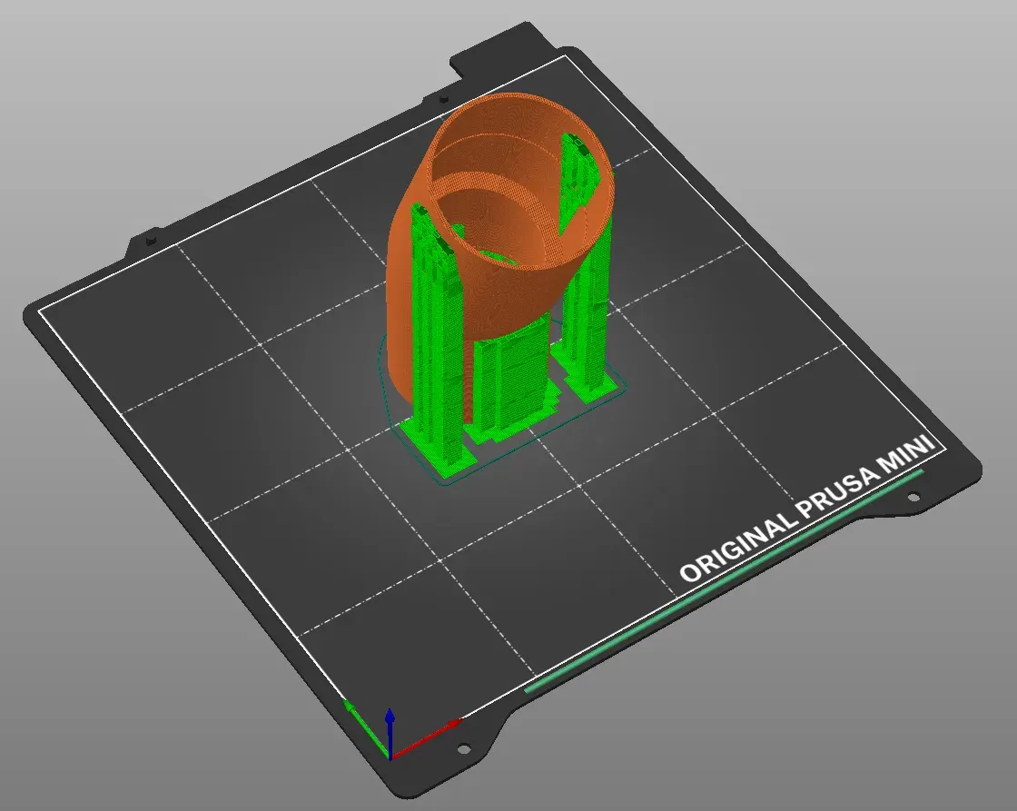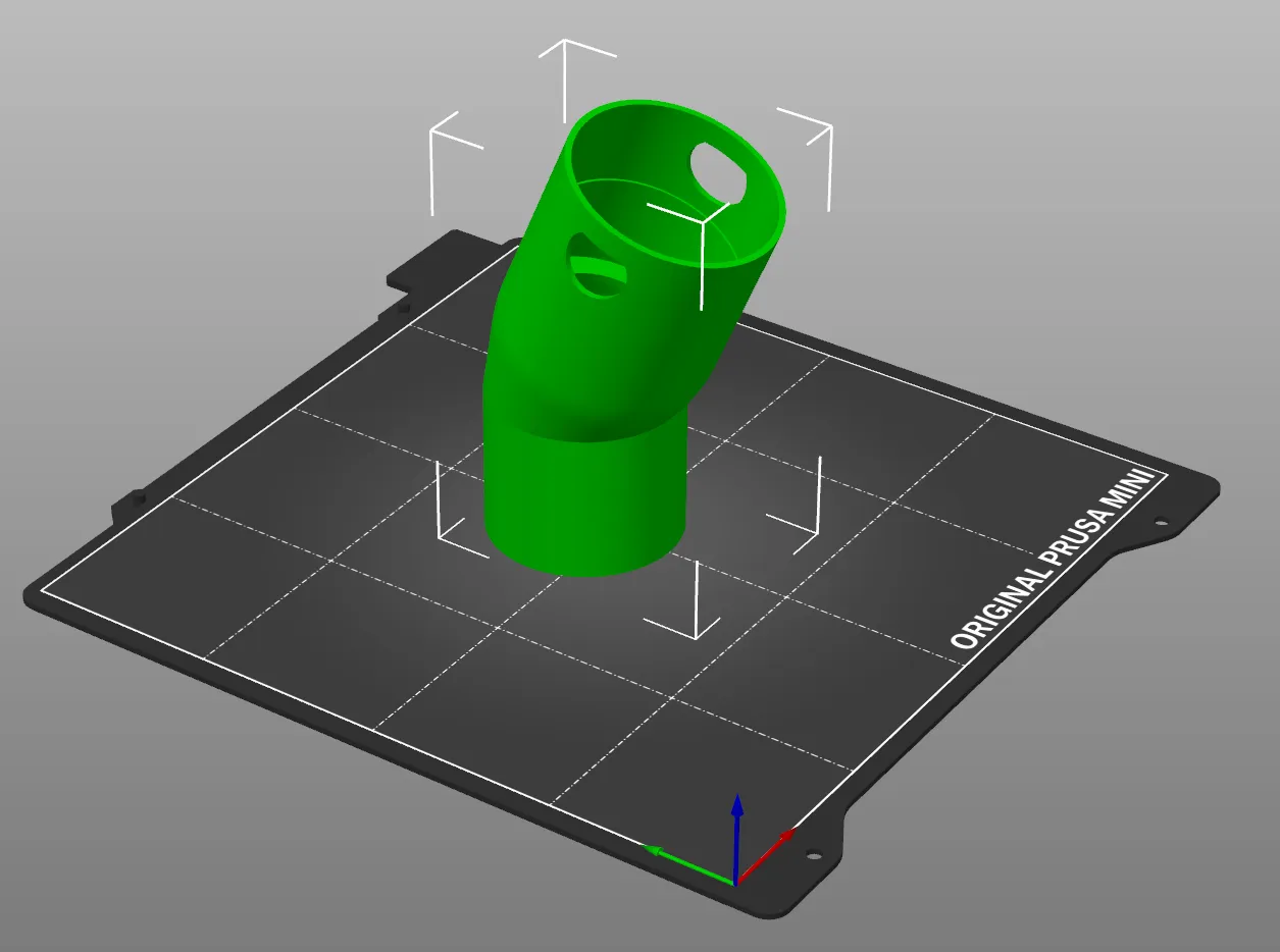 • hướng in: đặt nó với đầu nhỏ hơn trên bàn in, để làm điều đó ngay sau khi nhập bộ phận vào slicer, hãy xoay nó 180 + 22.5 độ (xem ảnh chụp màn hình từ eSlicer)