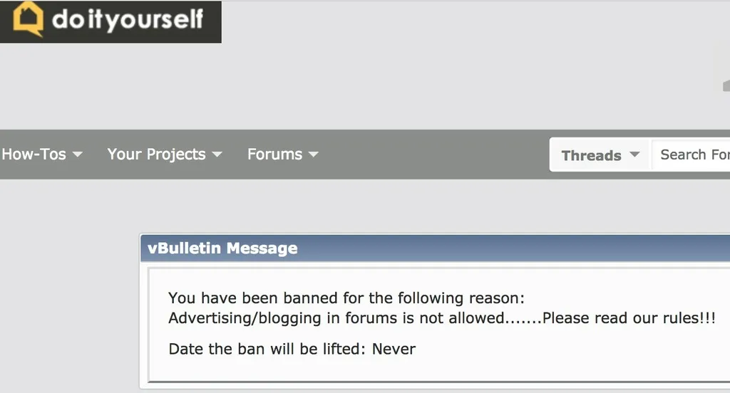 Có vẻ như doityourself.com là một cái tên không chính xác. Họ đã xóa chủ đề của tôi và cấm tôi vĩnh viễn vì "Quảng cáo" mà không có cảnh báo hay thông báo.