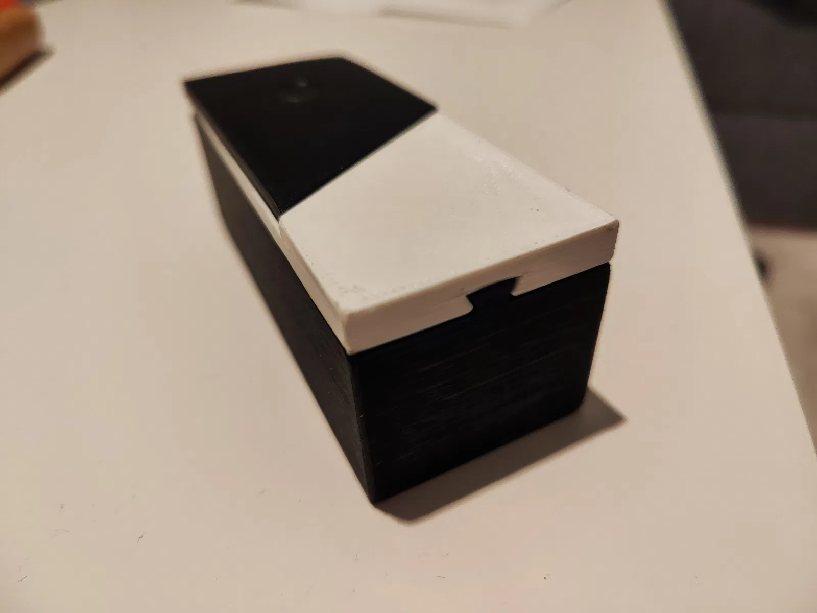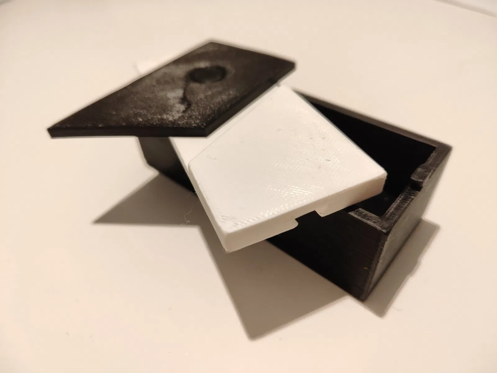 - Phần dưới của cơ chế có một lỗ ở phía trước, hoạt động như một khóa để kết nối với phần dưới của mô hình. Kết nối tất cả các phần lại với nhau để hoàn tất việc lắp ráp. Khi đưa phần trên của nắp trở lại vị trí ban đầu, “đồng xu” sẽ trở về vị trí của nó và khóa hộp lại.