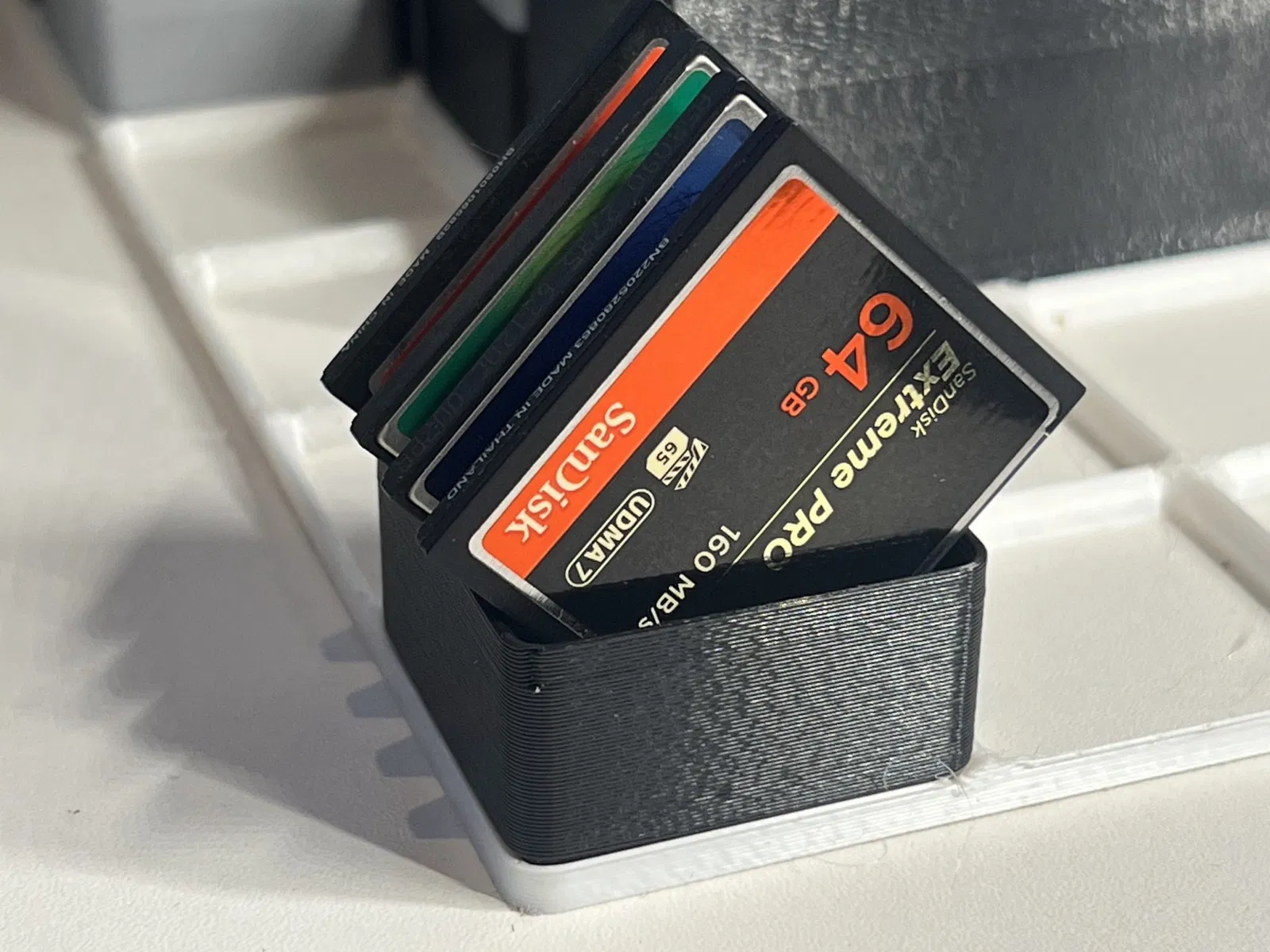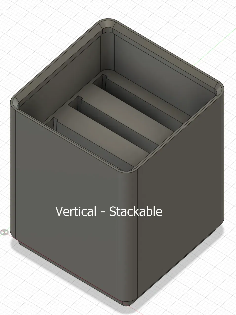 - Dọc Có thể chồng - giữ 5 thẻ CF nhưng hộp mở rộng trên đỉnh của các thẻ, vì vậy bạn có thể chồng các món đồ Gridfinity khác lên trên.