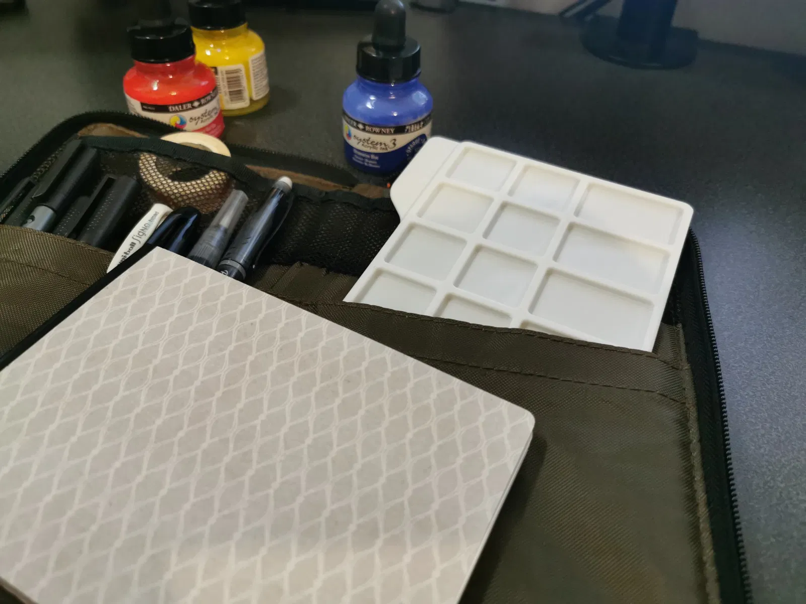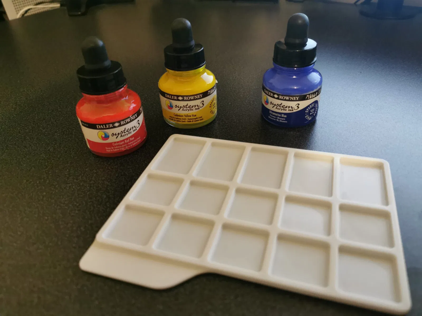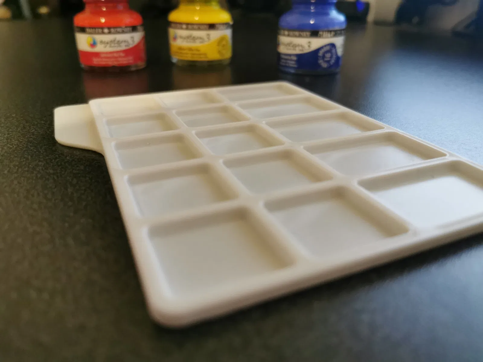 Các ô và bảng màu nhỏ và nông vì trường hợp sử dụng chính của tôi là mực acrylic, rất đậm màu và khô nhanh nên chỉ cần một ít là đủ.