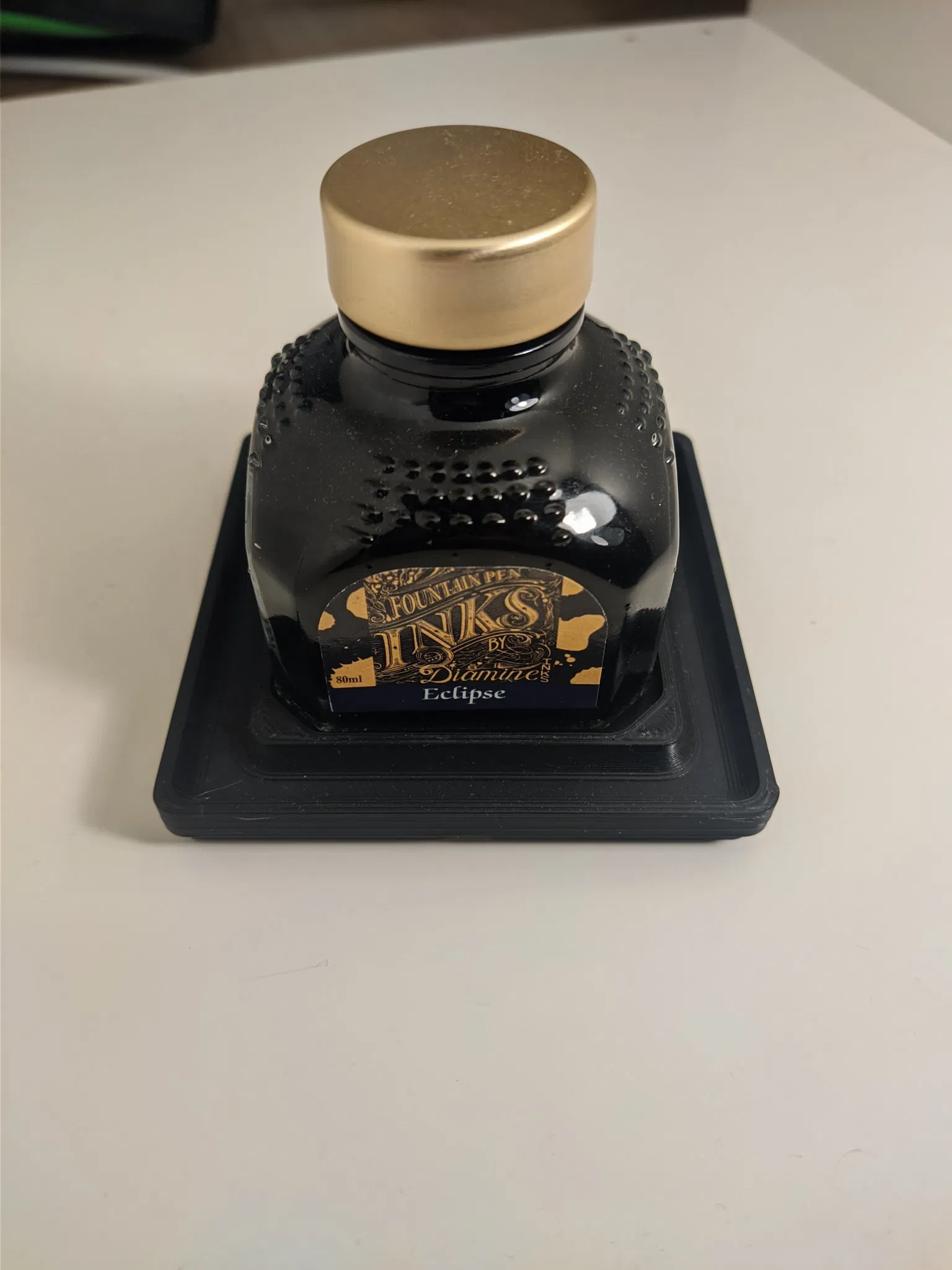 Người giữ cho một chai mực diamine 80ml. Tương thích với hệ thống Gridfinity được thiết kế bởi Zack Freedman.
