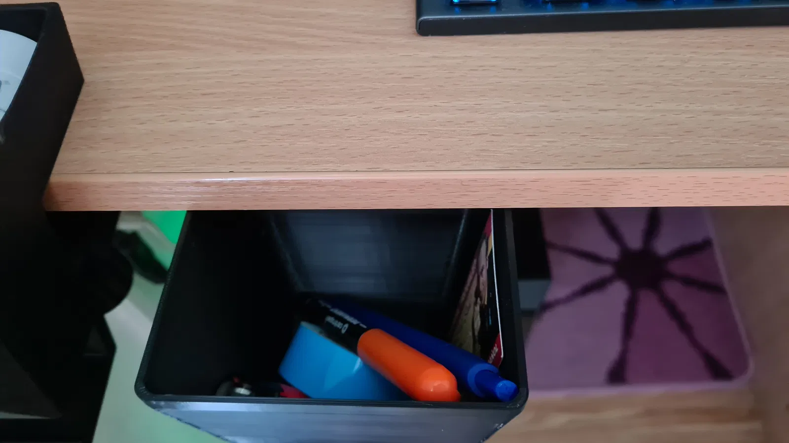 Giải pháp giấu kín tiện lợi để bạn vứt rác trên bàn hoặc sắp xếp đồ dùng văn phòng nhỏ gọn. Hộp đựng có thể thu vào, dễ dàng lắp đặt bằng băng keo hai mặt, có các phiên bản tùy chỉnh độ khít và kèm vách ngăn.