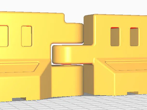 Thiết kế bu lông không cần support. In phẳng trên bề mặt in. Cần 1 cái cho mỗi cặp đoạn đường ray.