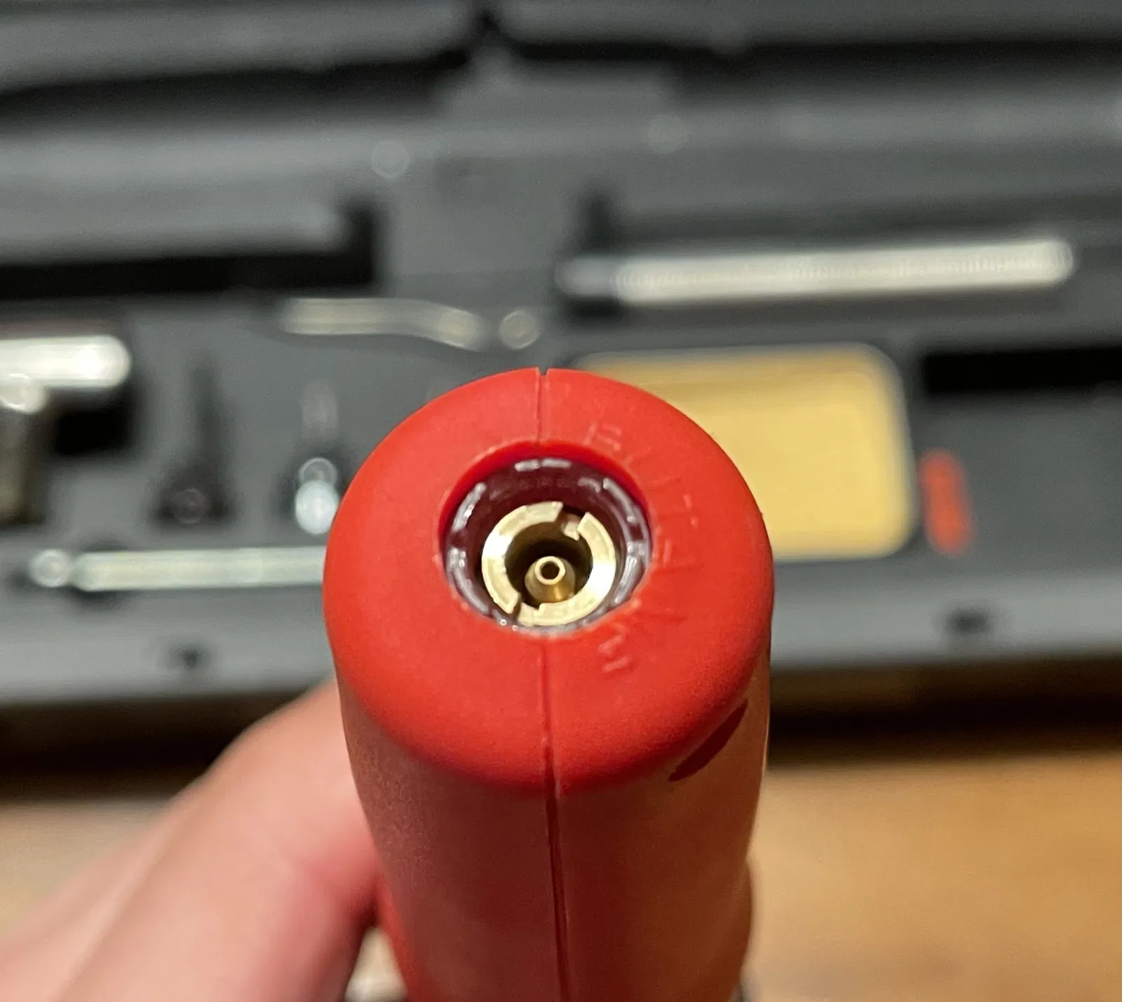 Để điều chỉnh lượng gas, hãy nới lỏng các vít ở dưới một chút và sau đó xoay bình gas bằng công cụ được trình bày ở đây cho đến khi lượng gas được đặt lại đúng.