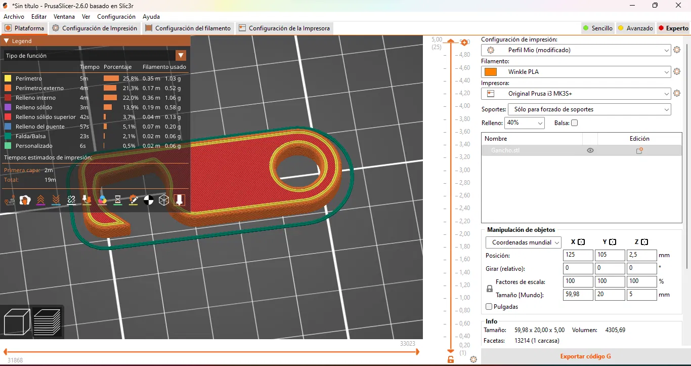 Móc "Gancho" được thiết kế để giữ cho dù che nắng ngoài bãi biển không bị lật úp. Bạn có thể buộc dây vào móc và gắn vật nặng vào đầu dây để giữ chân dù. Ngoài ra, bạn có thể sáng tạo thêm nhiều công dụng khác tùy thích. Nên in với infill 40% và 4 lớp.