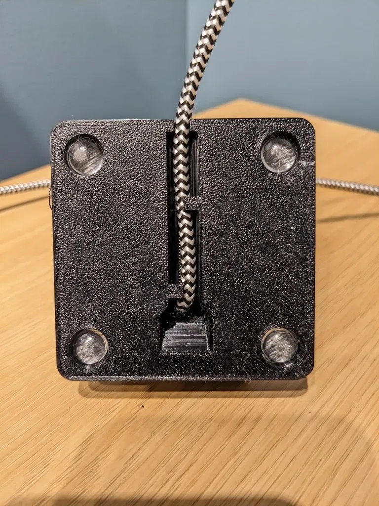 Đường dẫn cáp bên trong (thích hợp) và chỗ cho 4 miếng đệm ở dưới cùng. Được thiết kế đặc biệt để phù hợp với bộ phận McMaster Carr #95495K673 Miếng đệm dính Polyurethane, 7/16" OD, 13/64" Cao, Độ cứng 50A, Trong suốt
