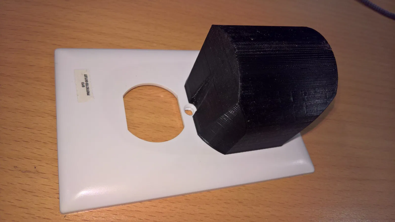 Tôi đã xem xét việc tạo ra một thiết kế kỳ lạ hơn mà cũng tích hợp tấm che ổ cắm, nhưng cái này đã hoạt động tốt và hoạt động mượt mà. Có thể có vấn đề về mã cháy với các vật liệu che thực tế, vì vậy tôi không muốn dính dáng vào điều đó.