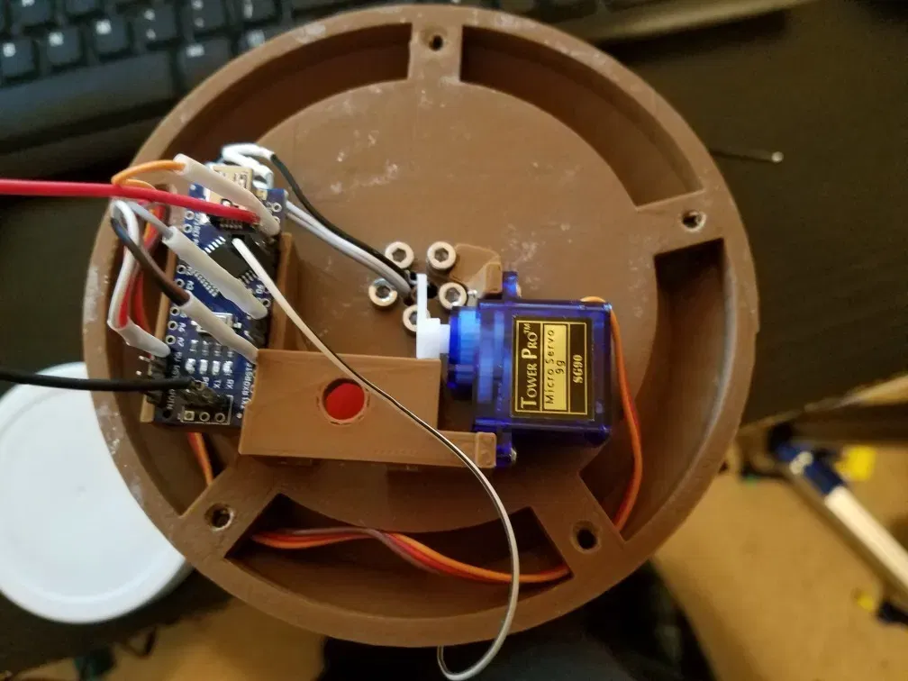 Pot-Upper.stl - Để tạo điều kiện cho các linh kiện điện tử bổ sung, tôi đã phải điều chỉnh vị trí của núm nguồn. Ngoài ra, Pot-Upper chứa một lượng vật liệu đáng kể mà tôi cảm thấy có thể được khoét rỗng. Điều này cũng cho phép tôi nhúng các đai ốc lục giác 3 mm để giúp cố định Pot-lower với Pot-upper. Nó cũng hữu ích vì bây giờ tôi có thể chạy dây qua các kênh và giữ chúng ra khỏi đường đi của cánh tay servo.
