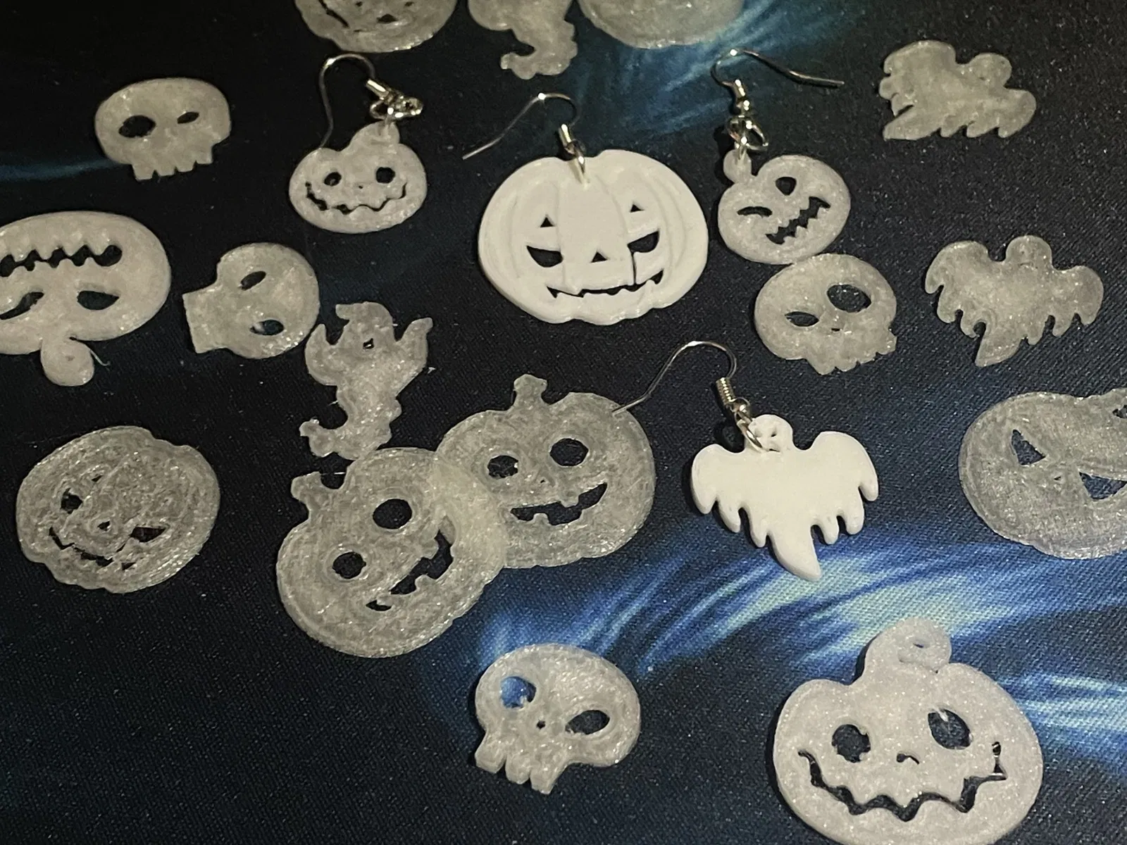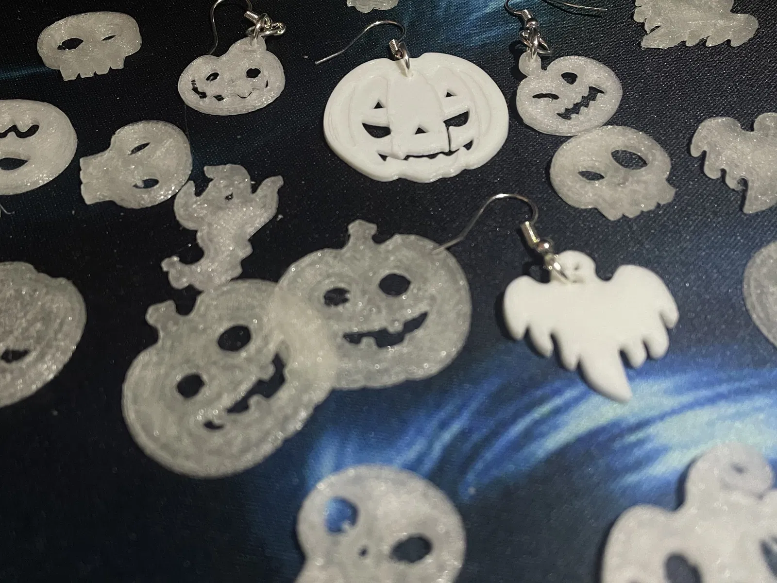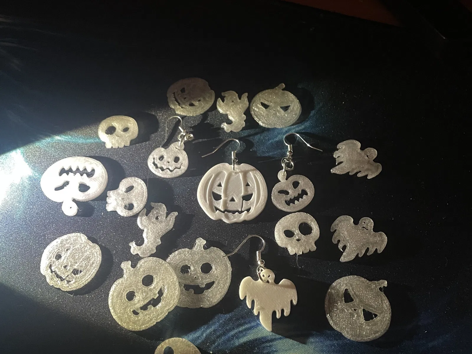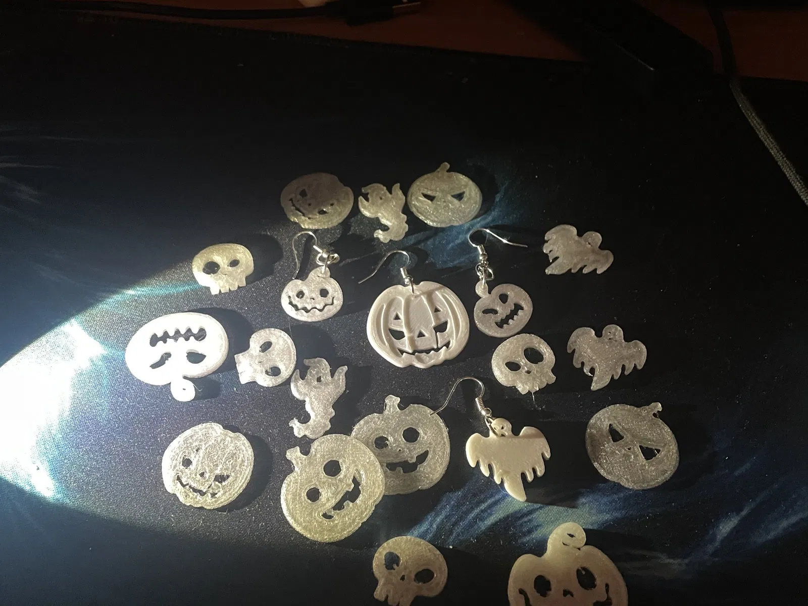 Pumpkings, Ma quái, Đầu lâu... Halloween đã đến. Hãy tự làm cho mình một đôi bông tai tốt nhất với sợi filament phát sáng trong bóng tối.