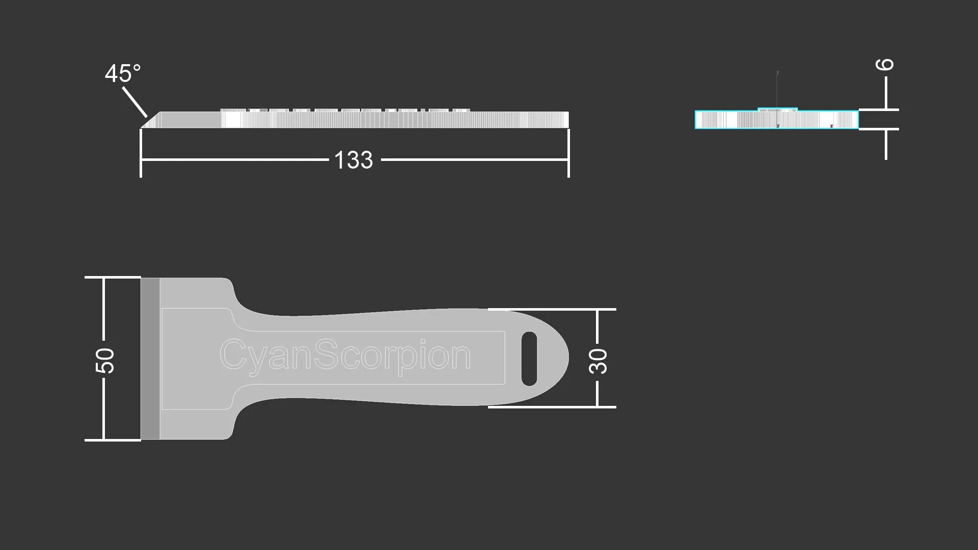 Đây là một mẫu khác của thìa để lấy các mô hình in ra khỏi bề mặt gia nhiệt. Tôi cố ý chọn một góc tù (45°) để không làm gãy đầu thìa trong lần sử dụng đầu tiên. Tuy nhiên, với những mô hình cứng đầu, có thể lớp đầu tiên sẽ bị gãy, nhưng điều này không nên làm ảnh hưởng đến chức năng của thìa. Mẫu tôi trình bày ở đây được in bằng PLA nhưng để có độ bền cao hơn, tôi gợi ý sử dụng PETG.