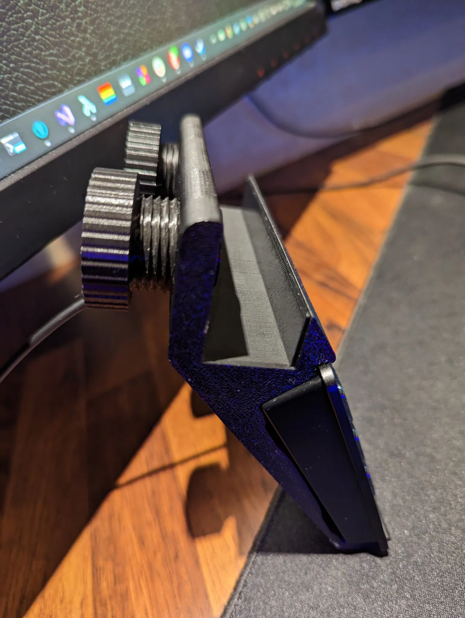 Dock có thể in mà không cần hỗ trợ trên máy in của bạn, nhưng bạn có thể thêm một số hỗ trợ cho giữa lỗ để đảm bảo. Các ren cần được làm sạch một chút theo cách nào đó. Tôi đã thêm một chút dung sai cho các lỗ và bu lông.