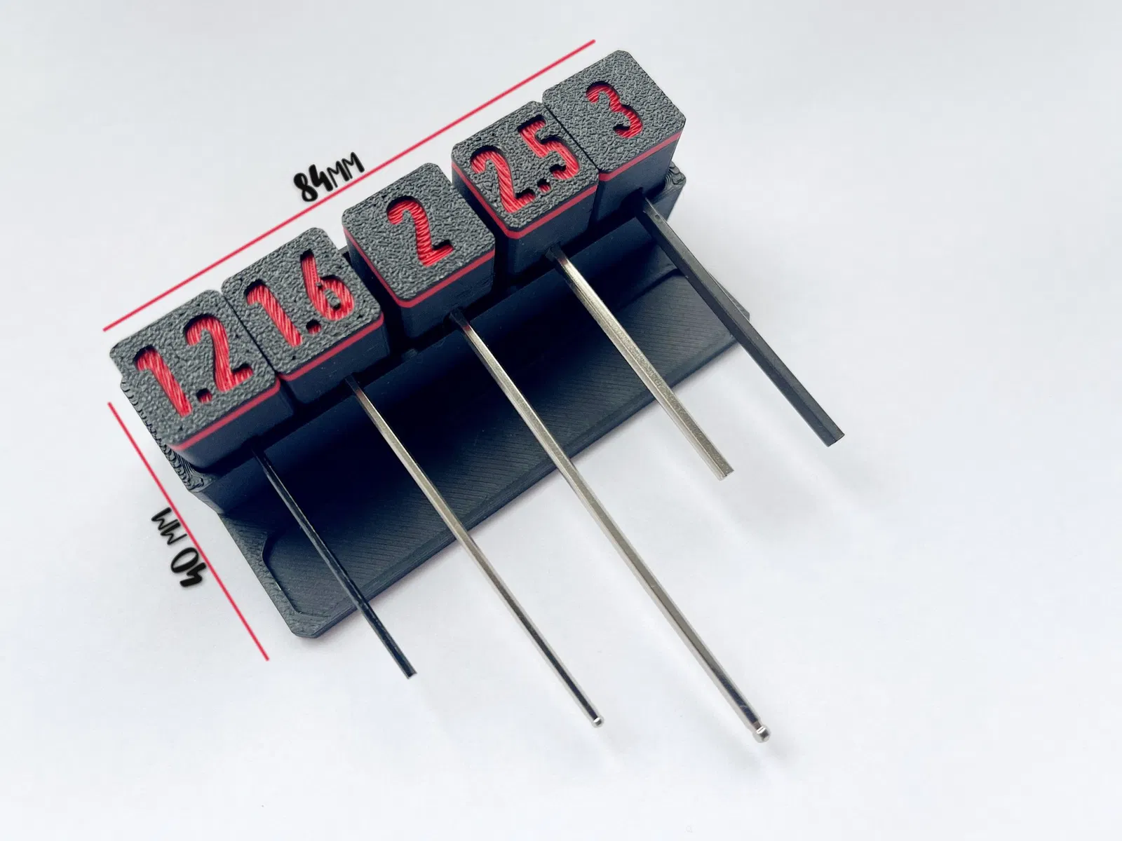 Lựa chọn tham số in của tôi là: 4 tường, 60% độ đầy, 4 lớp dưới, 3 lớp trên, chiều cao lớp 0.2mm. Nhưng, từ các bài kiểm tra của tôi, đối với chìa khóa Allen nhỏ hơn (ví dụ: 1.2mm), nó cũng hoạt động tốt với 2 tường, 15% độ đầy. Bản in rất nhỏ và nhanh, không quan trọng. Tôi thậm chí đã làm điều đó với 100% độ đầy cho cái 3mm.