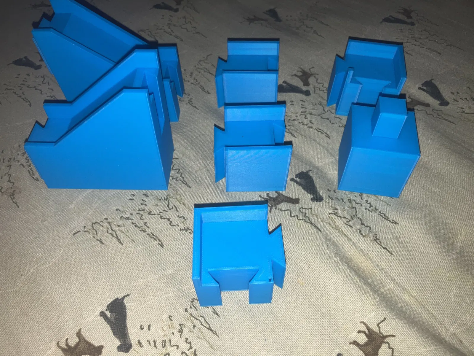 Mỗi mảnh đều có một lỗ ở đáy cho các khối xếp chồng, và mỗi mảnh băng tải đều có một mảnh khớp vào và ra.