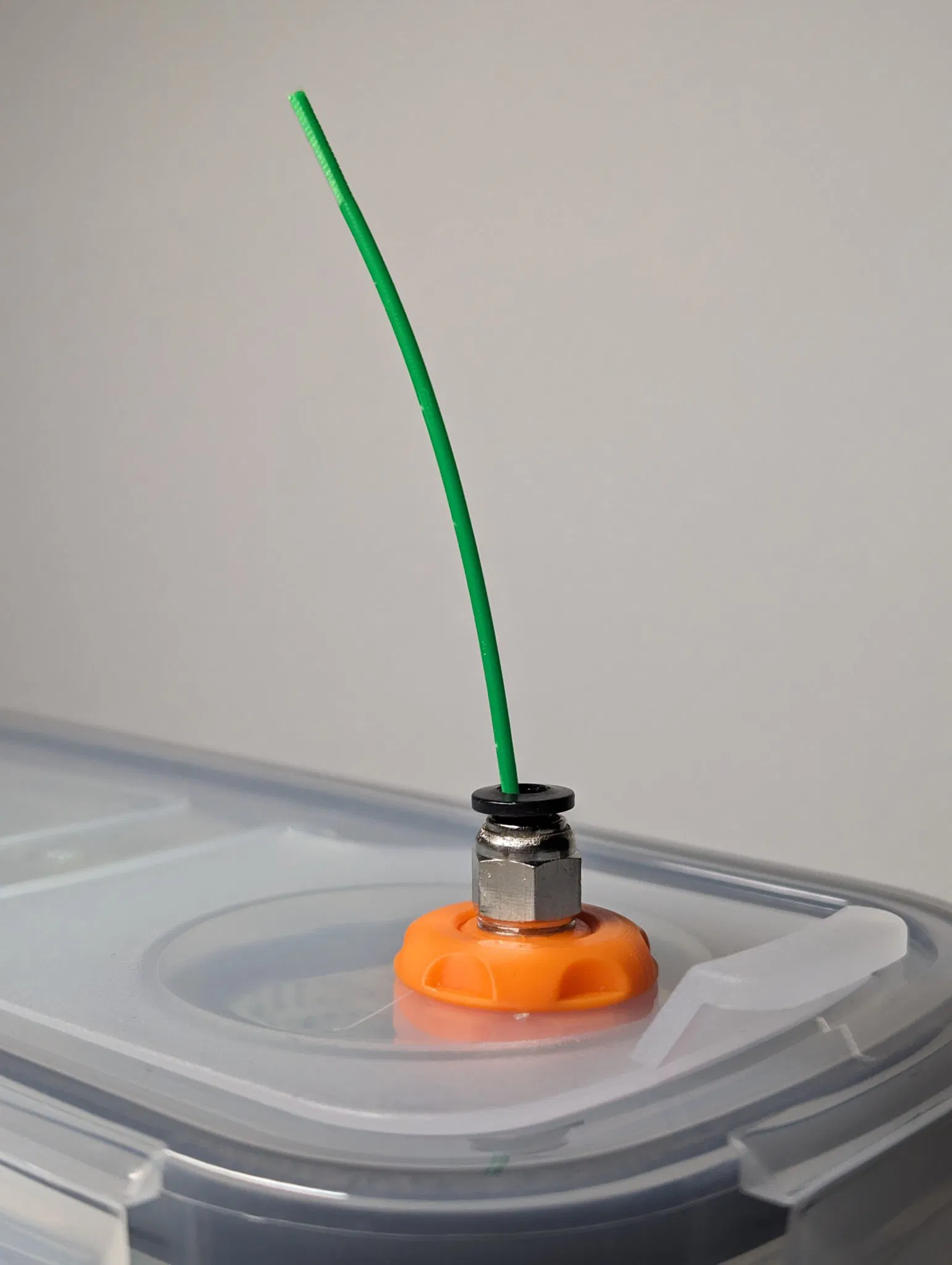 Bịt này niêm phong các hộp chứa filament khô sử dụng đầu nối khí nén, chẳng hạn như Dyna Box. Để một ít filament treo ra ngoài, và chỉ cần đẩy bịt này lên trên để niêm phong hộp. Khi bạn muốn sử dụng filament, không cần mở hộp, chỉ cần kéo nó ra và lấy nó.