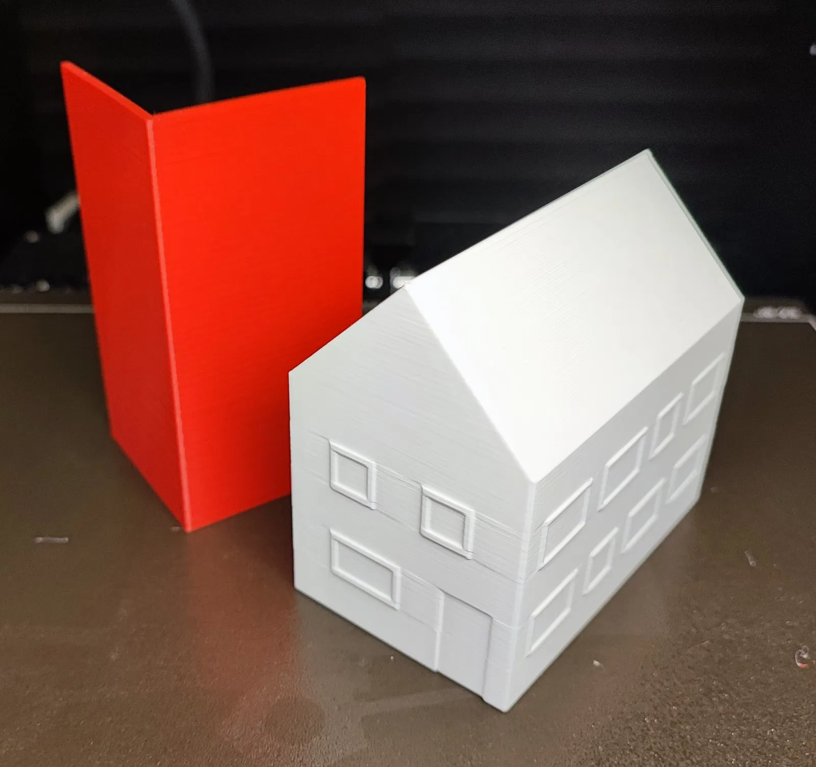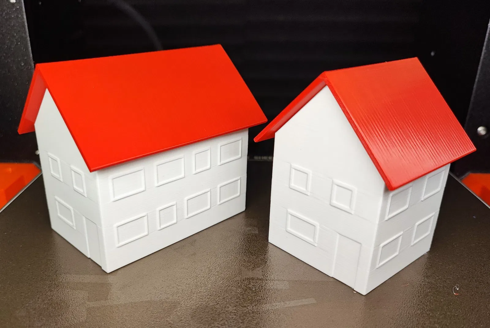 Các mô hình nhà thu nhỏ lớn và nhỏ với mái nhà và thân chính riêng biệt để in dễ hỗ trợ.