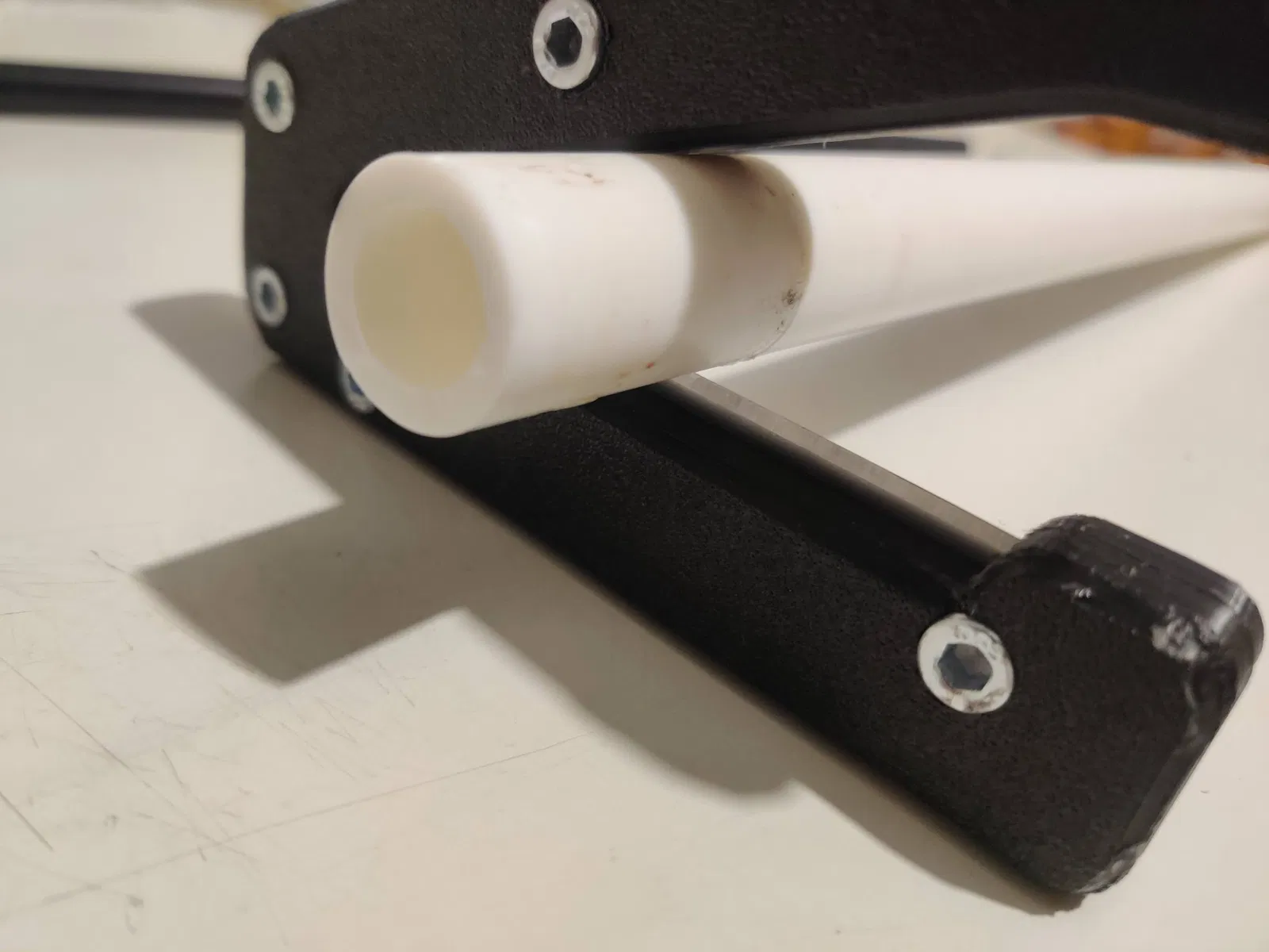 Đây là một máy cắt ống đơn giản. Nó có thể cắt các ống làm bằng nhựa mềm (PPR, PE, PVC, ABS) hoặc giấy.