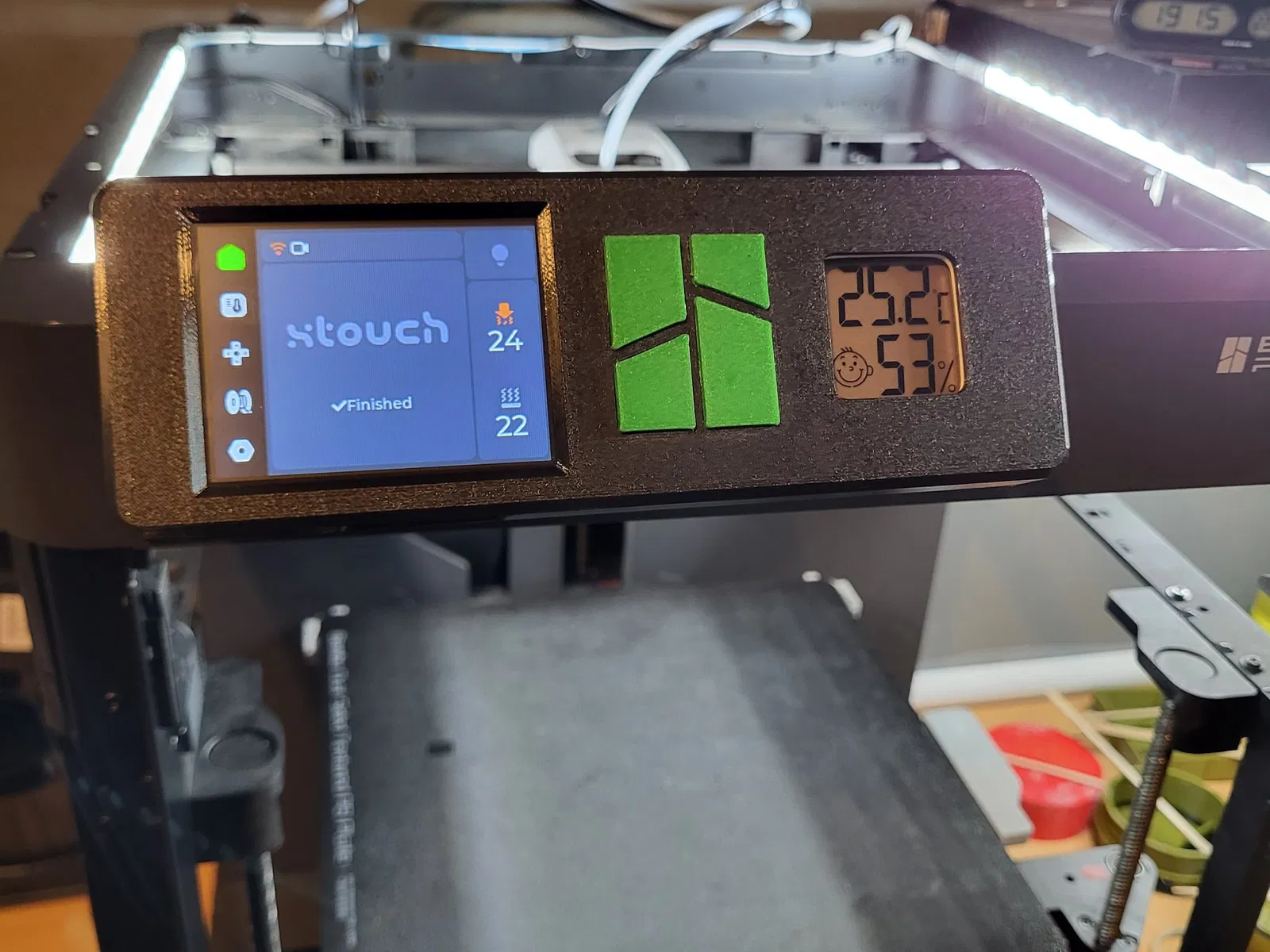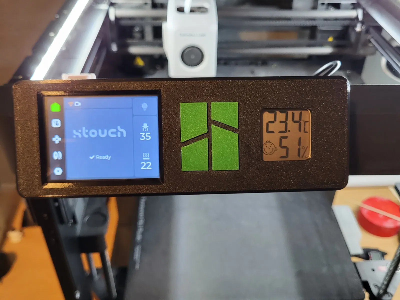 Đối với phần bản lề, sử dụng hỗ trợ mặc định và vừa vặn Đối với mặt trước có logo, sử dụng hỗ trợ mặc định và vừa vặn Đối với mặt trước không có logo, không cần hỗ trợ Đối với mặt sau, không cần hỗ trợ Logo Bambu có thể được dán trên mặt trước Cáp micro usb góc phải dài khoảng 220mm đến 250mm là cần thiết, như trong các bức ảnh nhưng một cái thẳng sẽ vừa nếu lắc một chút Cần 6 con vít m3 12mm để lắp cho mặt sau. Không siết quá chặt, nhẹ nhàng và từ tốn. Cần 2 con vít m3 10mm cho bản lề. Nếu bản lề kêu, một lớp mỏng dầu bôi trơn sẽ rất hiệu quả. Liên kết đến cảm biến độ ẩm/nhiệt độ ở đây, họ cũng có màu đen trên Amazon nếu bạn muốn tìm kiếm https://www.amazon.co.uk/Thermometer-Hygrometer-Temperature-Humidity-Selectable/dp/B09Z62HYY8/ref=sr_1_31?crid=1V2IM33H13U1K&keywords=small%2Bhumidity%2Bmonitor&qid=1698866678&sprefix=small%2Bhumity%2B%2Caps%2C992&sr=8-31&th=1 Liên kết đến bộ vít https://www.amazon.co.uk/720pcs-Socket-Countersunk-Printer-Machine/dp/B09Y2SDQKS/ref=sr_1_1_sspa?crid=31DR8JKQ81GEY&keywords=720%2Bpcs%2Bm3%2Bhex&qid=1698867287&sprefix=720%2Bpcs%2Bm3%2Bhex%2Caps%2C341&sr=8-1-spons&sp_csd=d2lkZ2V0TmFtZT1zcF9hdGY&th=1 Liên kết đến tệp gốc bao gồm các liên kết để mua màn hình xtouch và hướng dẫn thiết lập https://www.f3d.vn/3d-model/156701-vo-op-xtouch-cho-bambu-lab-p1p-s Nếu có điều gì khác tôi có thể nghĩ ra, tôi sẽ thêm vào.