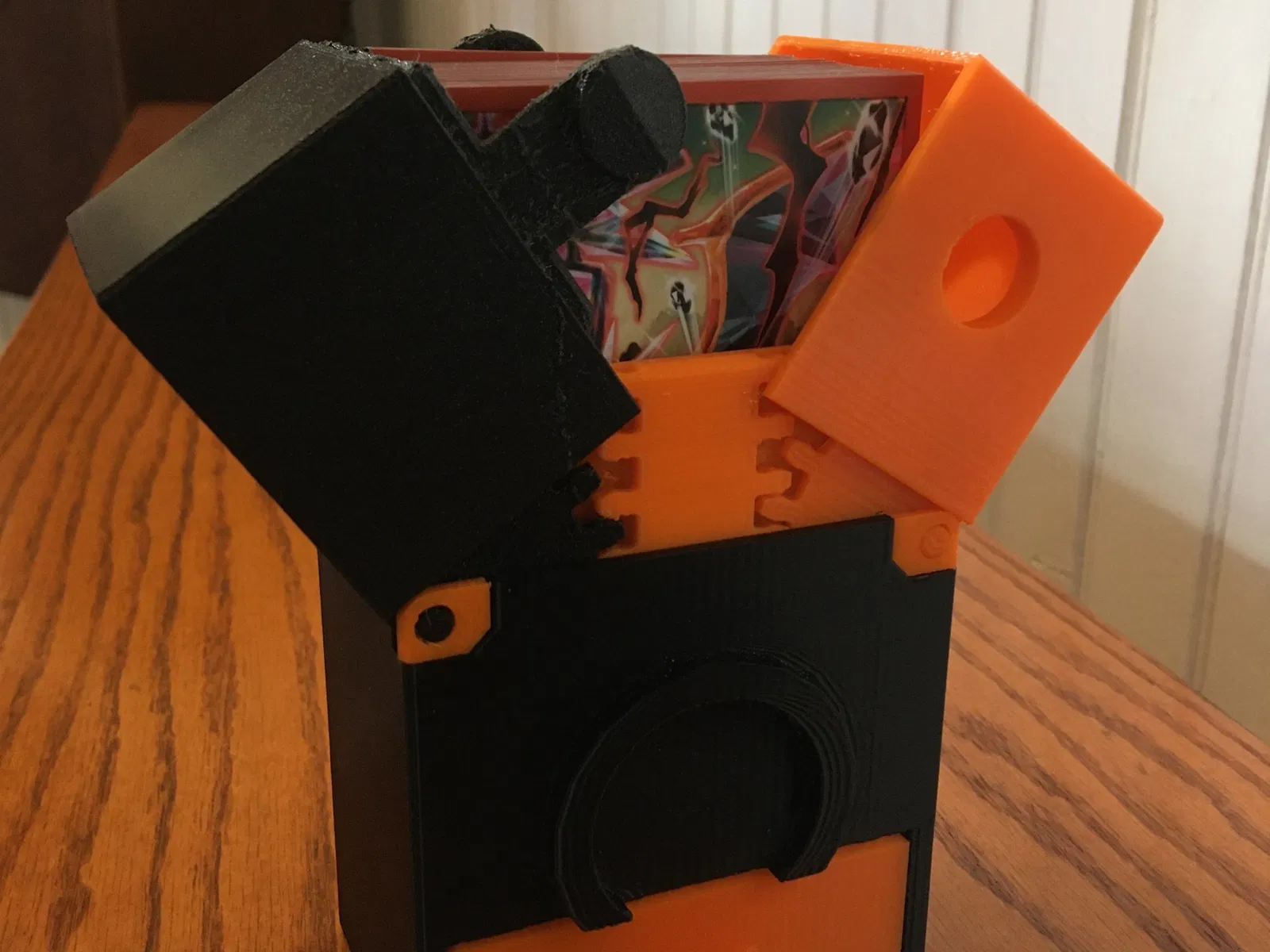 Hộp deck này có thể chứa 60 thẻ đã được bọc. Tôi khuyên bạn nên in nắp bằng PETG với độ dày 1-2, để các nút có đủ độ linh hoạt. Nhưng PLA cũng có thể hoạt động tốt.