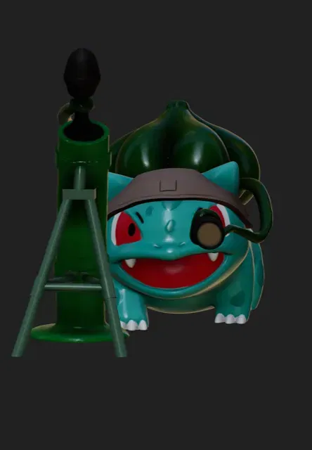 ý tưởng của tôi về một Bulbasaur quân đội có 3 phần có thể ghép lại với nhau, nếu làm các màu khác nhau hoặc một màu đồng nhất cho màu đơn.