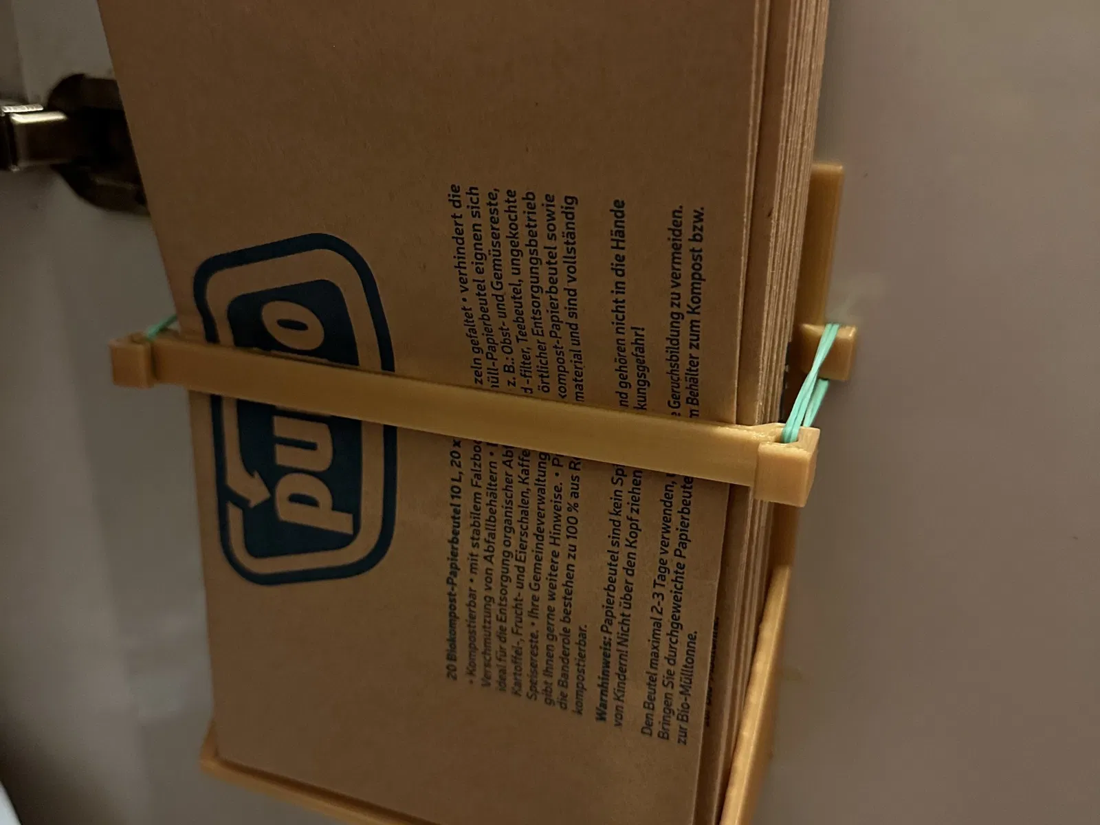 Tôi muốn một cách để lưu trữ các túi giấy gần thùng rác hữu cơ. Tôi không tìm thấy gì phù hợp, vì vậy tôi đã thiết kế cái này.