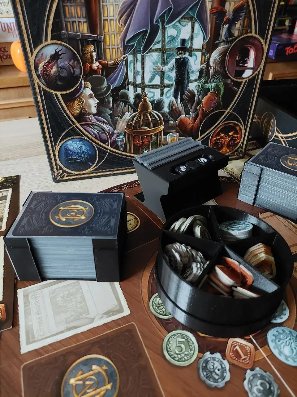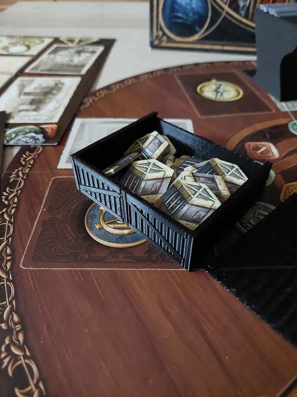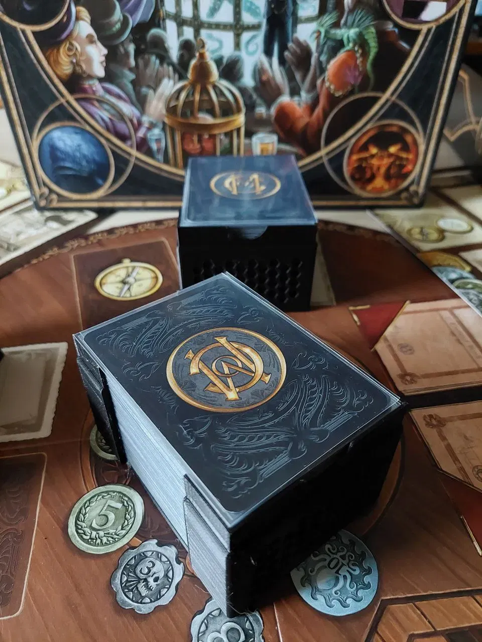 Hộp Com_3 được tùy chỉnh từ cái này: https://www.thingiverse.com/thing:3072760/files cho thẻ quái vật. Bạn sẽ cần hai hộp để chứa tất cả các thẻ (2 nắp cũng vậy).