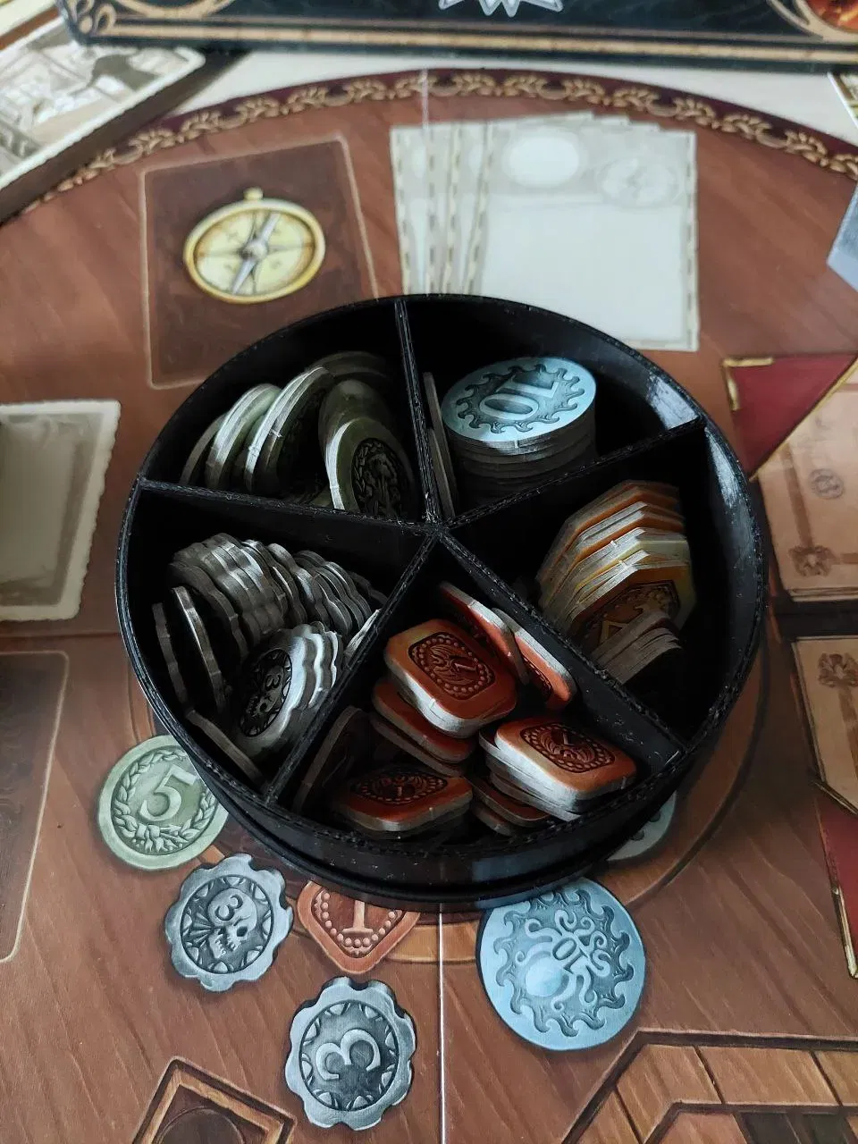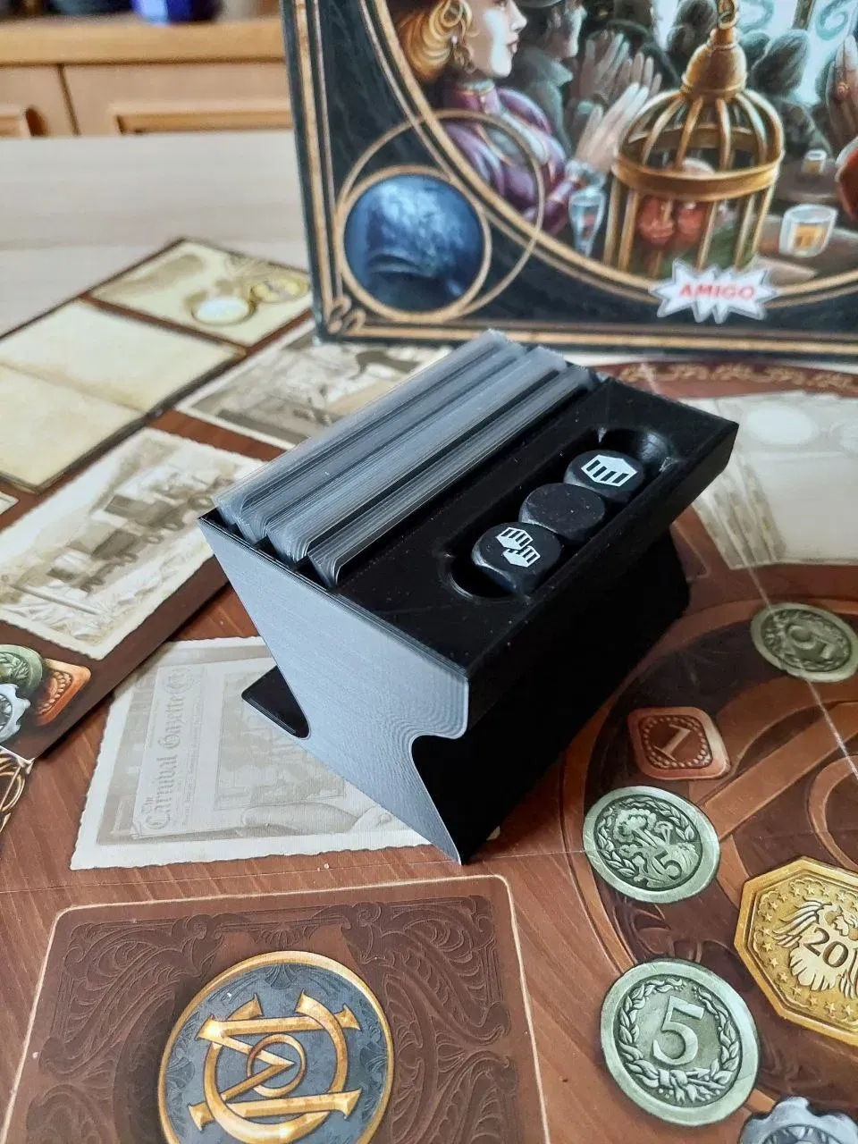 Hộp cho các token thợ săn được lấy từ cái này: https://www.thingiverse.com/thing:3770505/files; bạn cần chọn tệp Quacks_OneTrayNoSlot.stl cho hộp và Quacks_Lid.stl cho nắp.