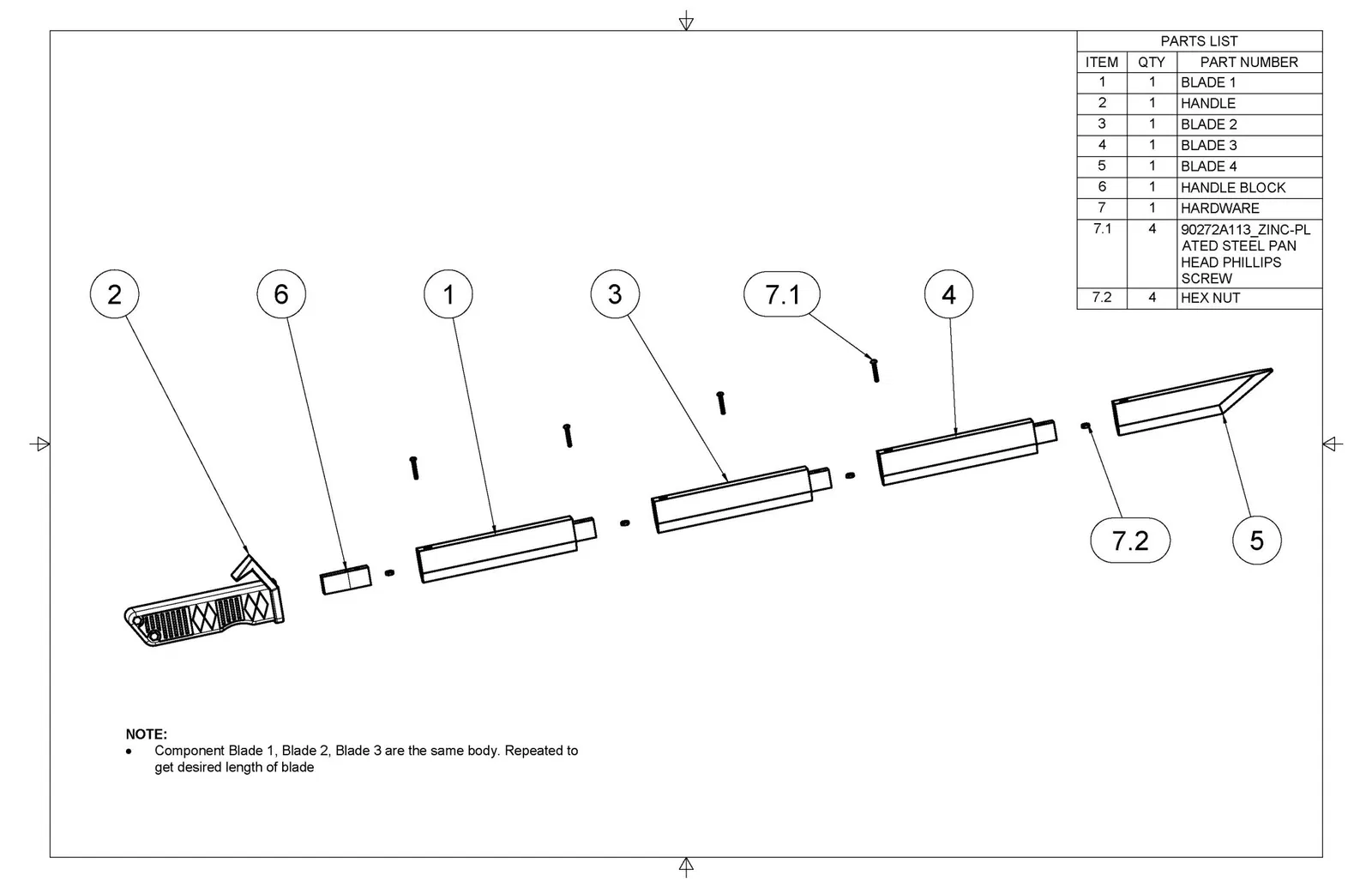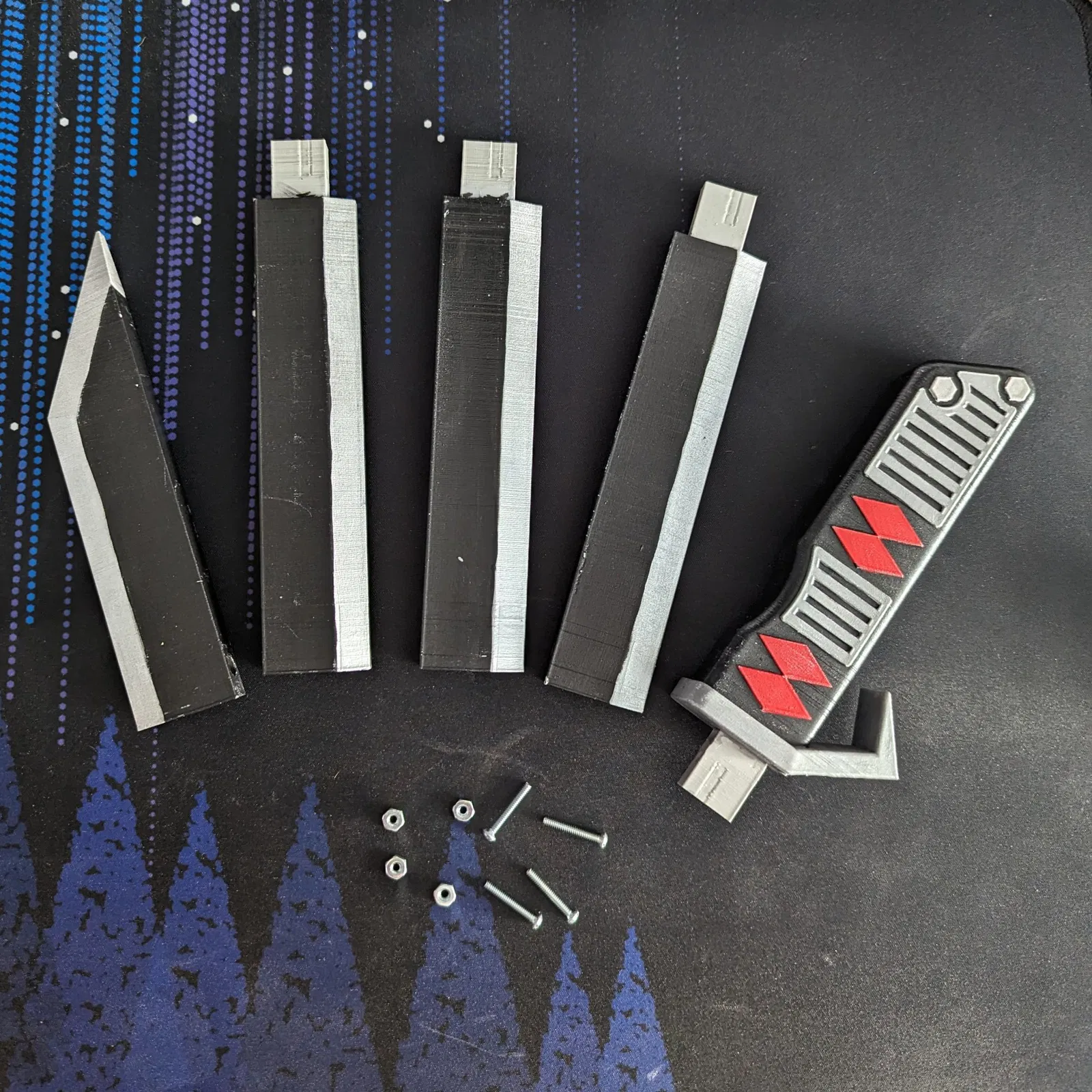 Tôi cần có thể tháo rời thanh kiếm để dễ dàng di chuyển. Điều này giúp việc đi đến một buổi hội chợ dễ dàng hơn vì tôi chỉ có một vali xách tay để mang theo. Các ốc vít là #4-40 x 3/4 in. Tôi tìm thấy chúng tại Lowe's trong một gói có bao gồm ốc vít và đai ốc. Mô hình đoạn lưỡi có thể được lặp lại để có được các chiều dài khác nhau mà bạn muốn. Mỗi đoạn thêm 150mm vào tổng chiều dài. Tôi đã làm điều này cho một bộ cosplay ninja. Chúc bạn cosplay vui vẻ!!
