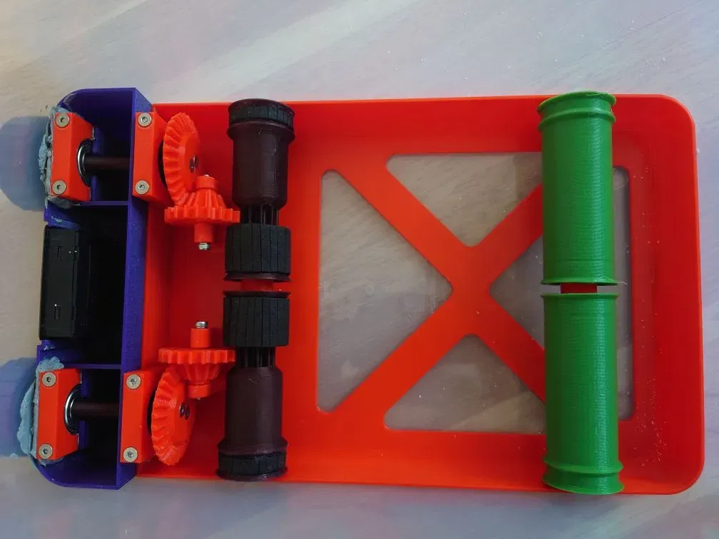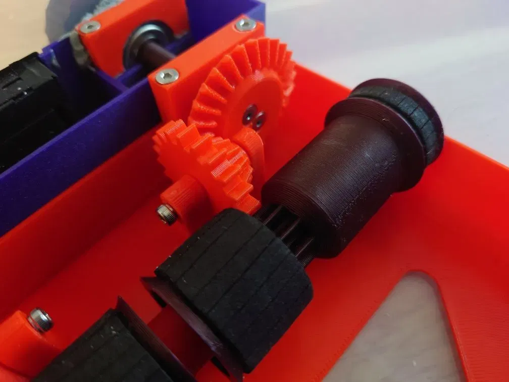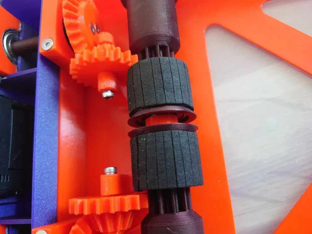 - Tấm cao su xốp (~4mm dày) (Moosgummi) để có thêm độ bám trên cuộn được dẫn động