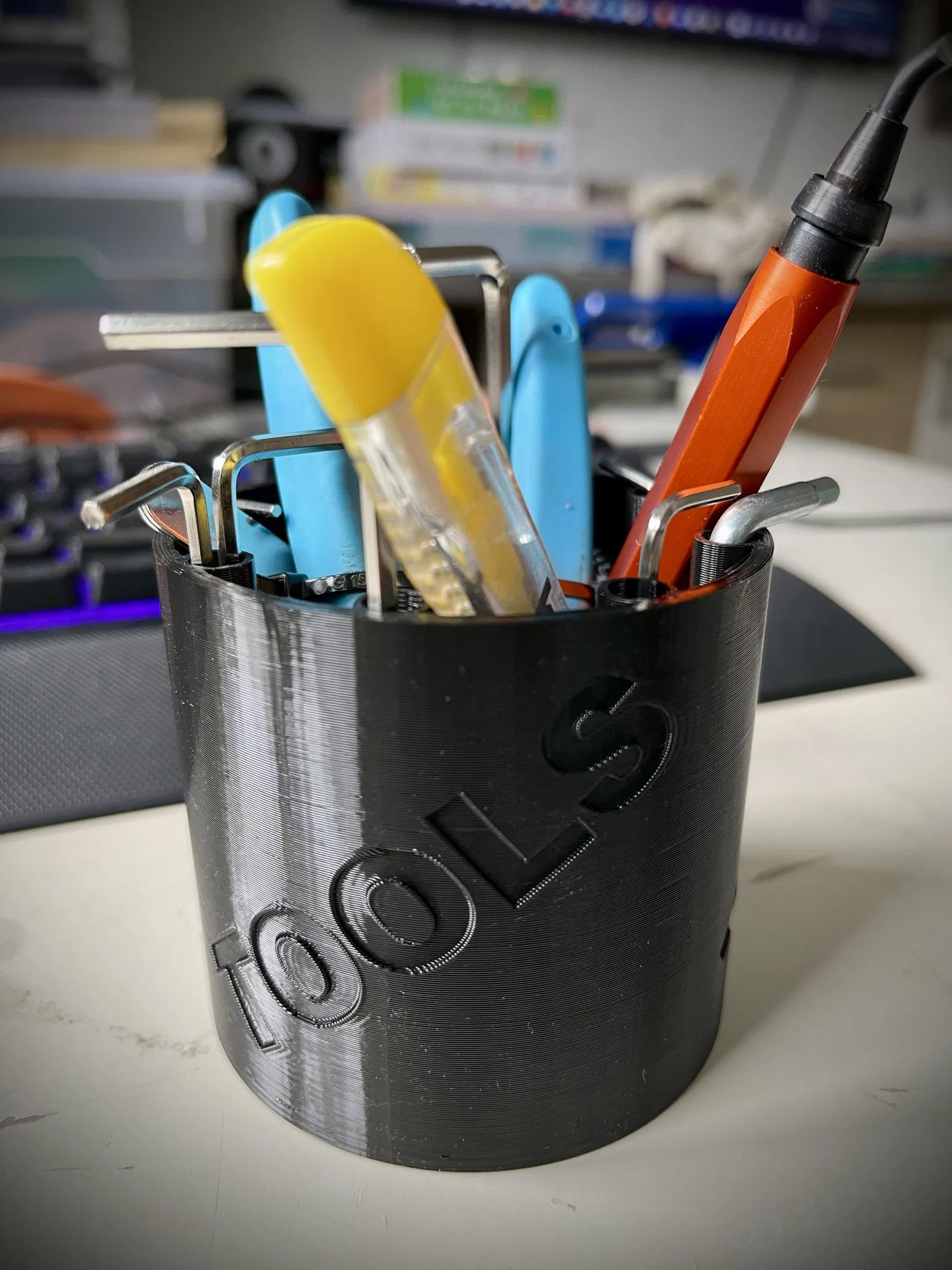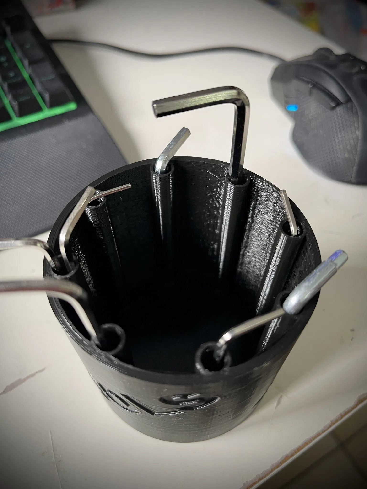 Vì những chiếc chìa khóa Allen của tôi luôn nằm lộn xộn trên máy in 3D và tôi luôn phải tìm kiếm dụng cụ của mình. Tôi đã tạo ra hình dạng này khoảng 8cm rộng và khoảng 8cm cao và có thể để tất cả các thiết bị của mình vào đó.