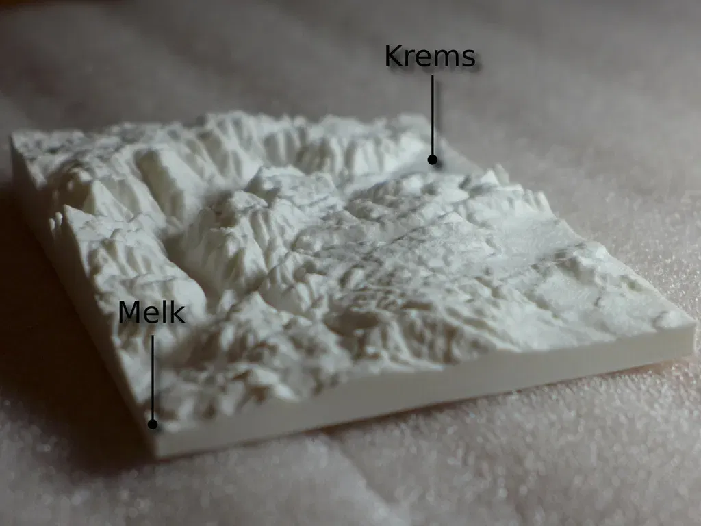 Mô hình địa hình của Thung lũng Wachau ở Lower Áo. Nổi tiếng với phong cảnh đẹp.
