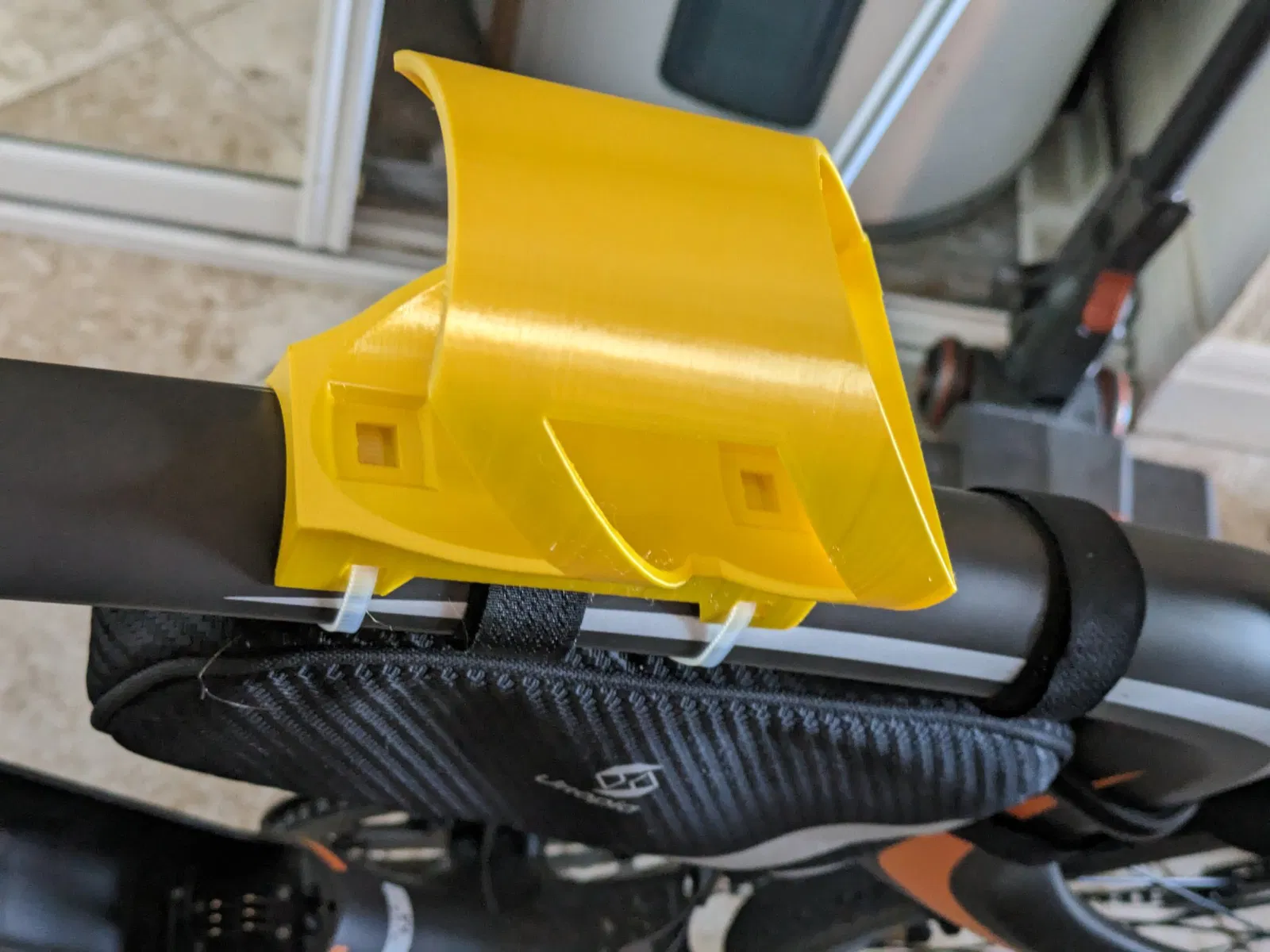 Khi đi xe đạp mới của tôi, tôi không thể dễ dàng với tới chai nước của mình. Gắn bằng 2 dây zip và một miếng đệm nhỏ dưới khung. Đã ghi lại đường cong của chiếc xe đạp bằng cách sử dụng thước đo hình dạng. Tôi đã sử dụng một vài miếng cao su có thể nén dưới khung để ngăn nó di chuyển qua lại. nhẹ hơn 60 gram với cài đặt in mà tôi đã sử dụng, có một phần giữa lún xuống để có thể vừa bất kỳ đâu dọc theo cột sống mà bạn muốn.
