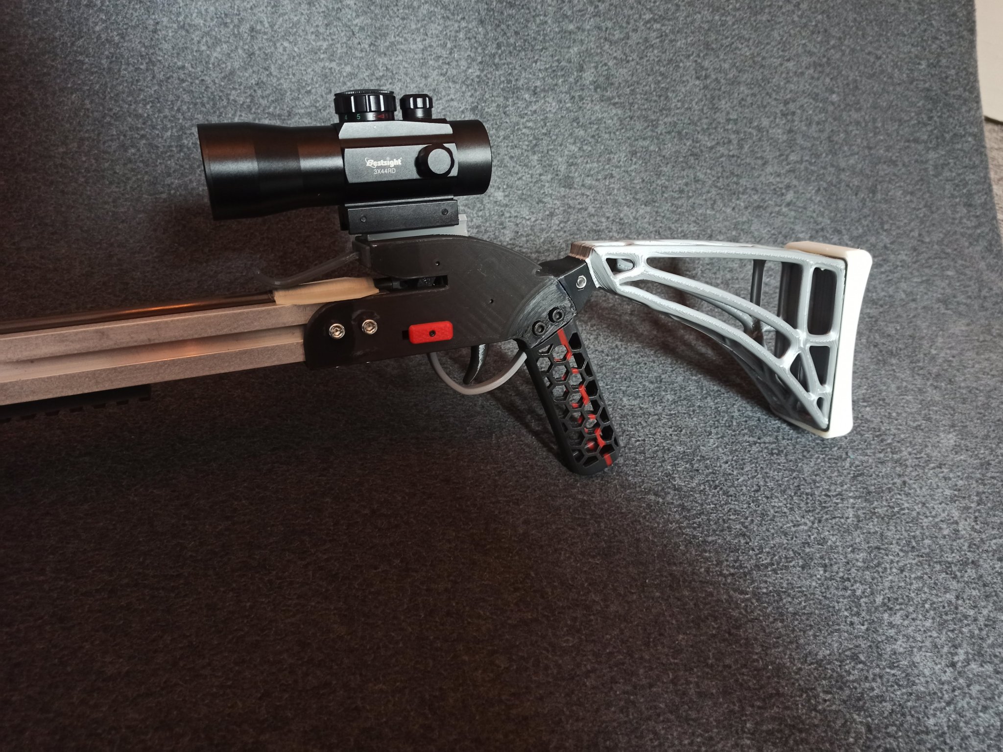 Chủ yếu là 3D in nỏ mạnh nhưng một số phần bổ sung là cần thiết. Chủ yếu là bu lông số liệu và cấu hình nhôm 3030.