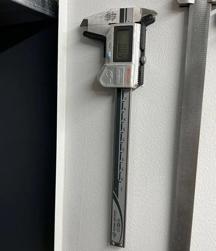 Một người giữ đơn giản cho một caliper Mitutoyo IP67. Có thể được vặn vào tường - Tôi đã sử dụng băng hai mặt