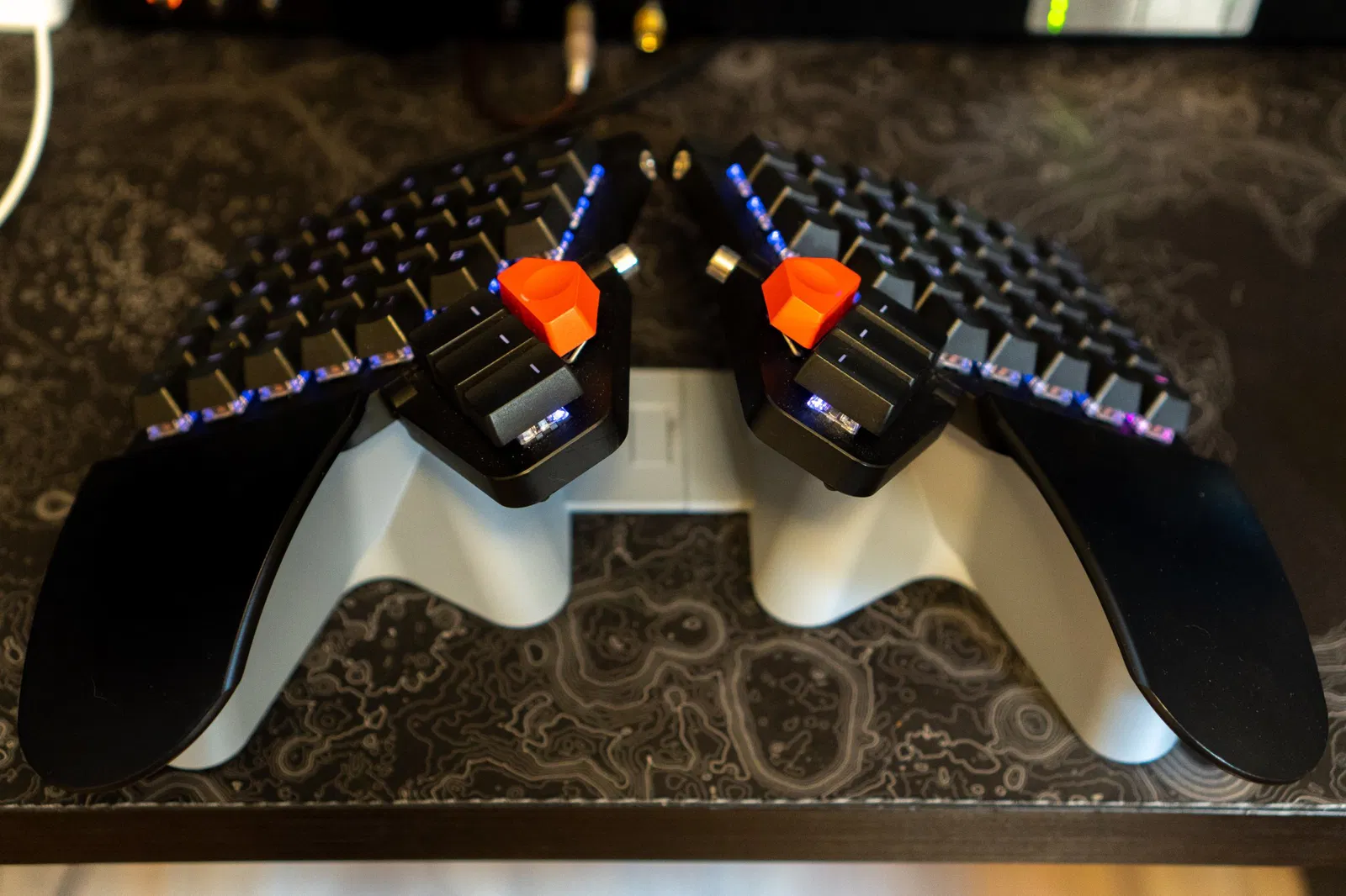 Tôi thích ZSA moonlander MK1 của mình nghiêng ra và về phía trước (như thể tay tôi đang resting trên đỉnh của một quả bóng nhún lớn) mà không cần nâng cao các cụm ngón cái.