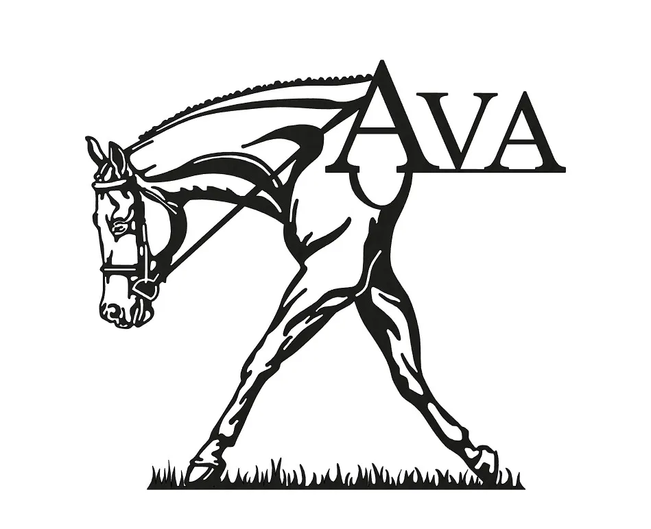 Ngựa Ava đi trên cỏ với biển tên cá nhân