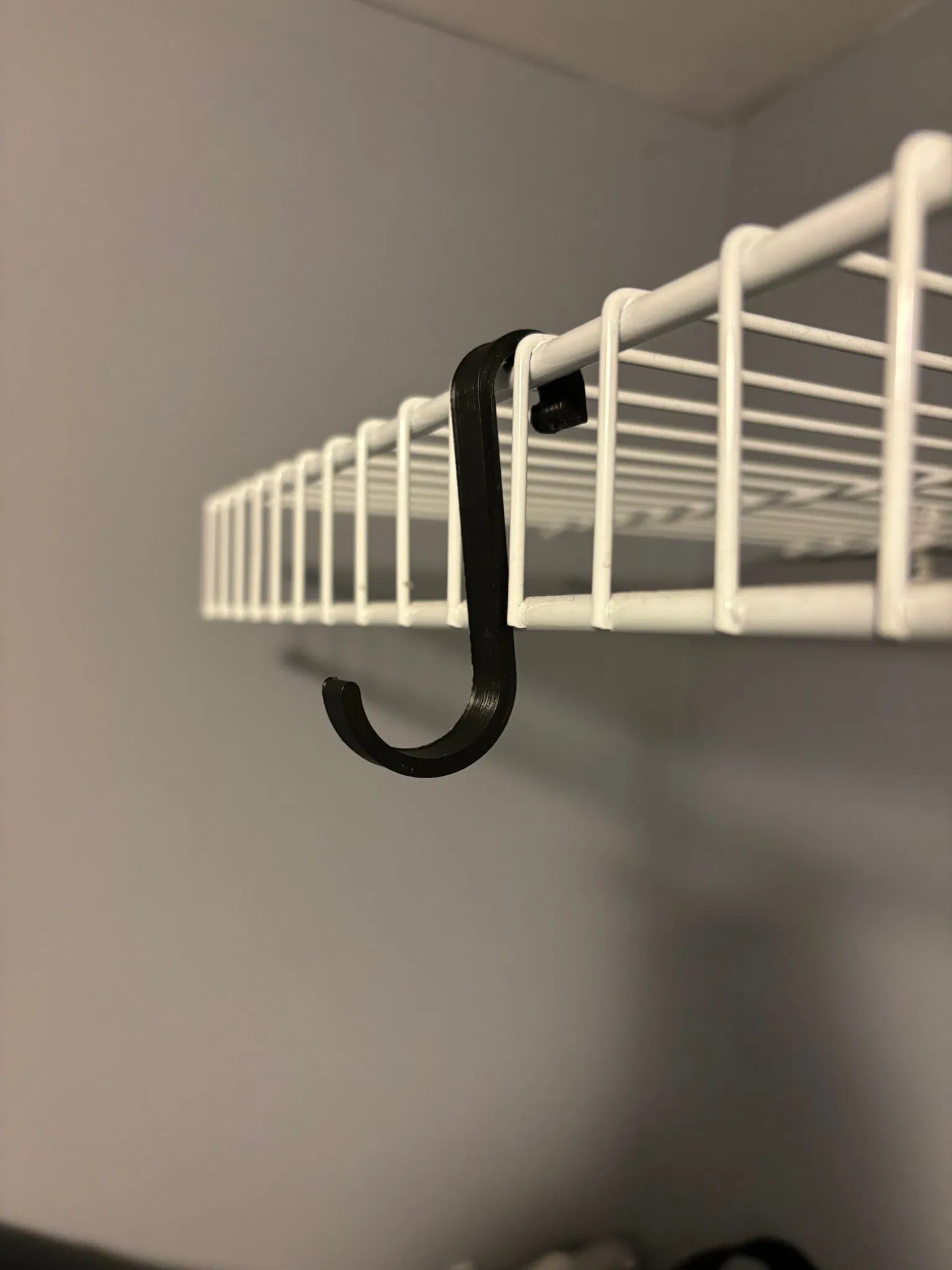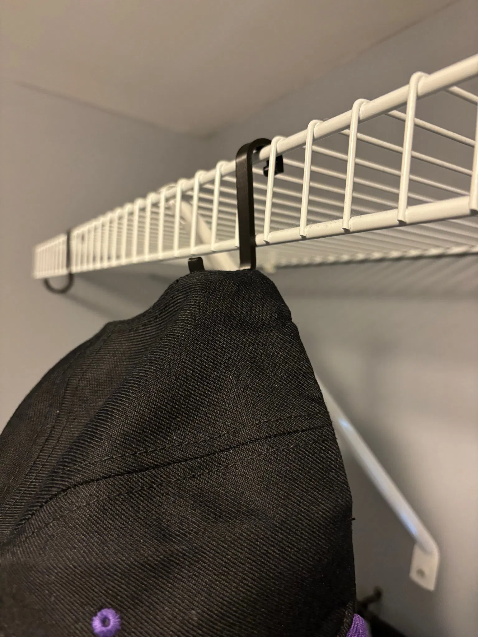 Móc nhanh chóng cho mũ hoạt động tốt với kệ dây (và có thể với những thứ khác). In nhanh và dễ dàng, tôi đã sử dụng PLA Hatchbox thông thường, 10% độ đặc, viền.