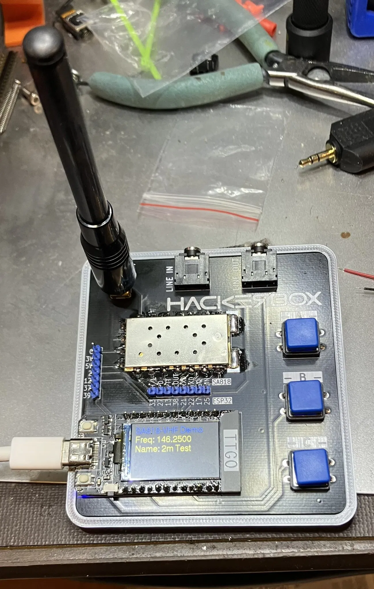 Hackerbox 96 là một người theo dõi hai mét. Hộp này giữ PCB ra khỏi bàn.