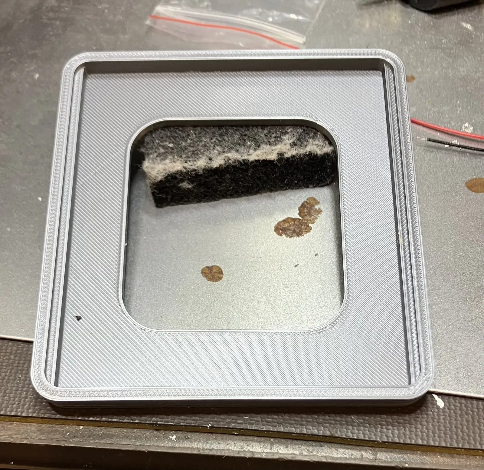 Các chi tiết liên quan nếu bạn muốn tái tạo thiết kế trong chương trình CAD của bạn, khu vực bên trong là 83 x 88 mm, các góc có bán kính 4mm. Khu vực bên ngoài là 89 x 94 mm và có bán kính 7mm. Đáy dày 3mm, các bức tường của hộp dày 3mm. Hộp cao 8 mm hoặc dày tùy thuộc vào cách bạn đo. Có hai "ray" 2mm dọc theo hai bên trái và phải, nằm cách bề mặt trên 1.6mm. Chúng hỗ trợ bảng mạch và giữ các chân nhô ra từ đáy hộp. Lỗ bên trong có mặt để giảm thiểu việc sử dụng nhựa và giảm thời gian in. Đây là một hộp 53 x 58 mm với các góc bán kính 10mm.