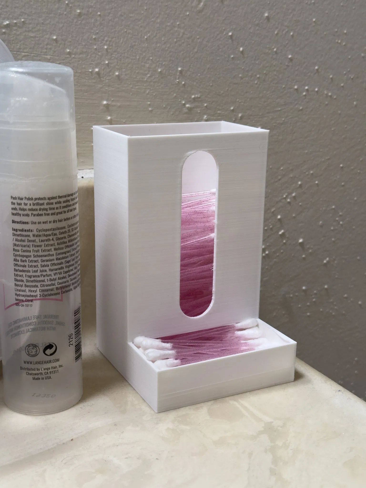 Tôi đã mệt mỏi với việc chỉ có một hộp bông ngoáy tai trên bồn rửa mặt của mình. Vì vậy, tôi đã làm một giá đỡ cho chúng để gọn gàng không gian bồn rửa.