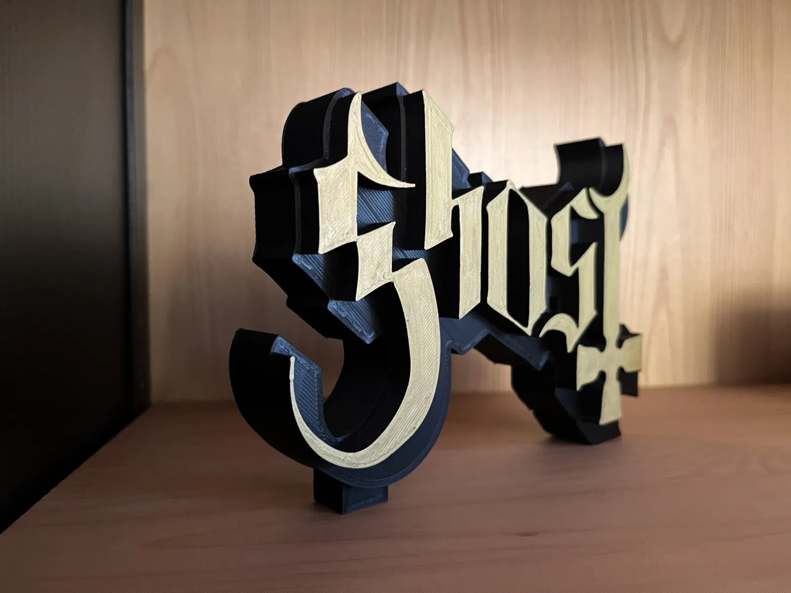 Biểu tượng Ghost B.C. in đen mờ với chữ vàng nổi bật