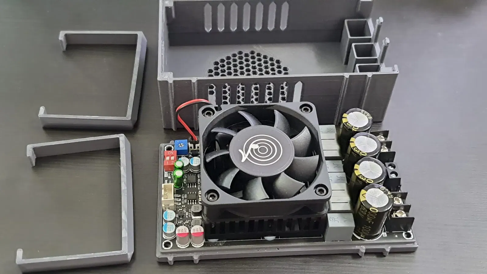 Bảng điều khiển phía trước không được tùy chỉnh, điều này phụ thuộc vào loại kết nối đầu vào của bạn và loại biến trở âm lượng của bạn: bạn có thể đơn giản khoan lỗ hoặc nhập STL vào ThinkerCad và đặt một số lỗ, sau đó xuất và in.